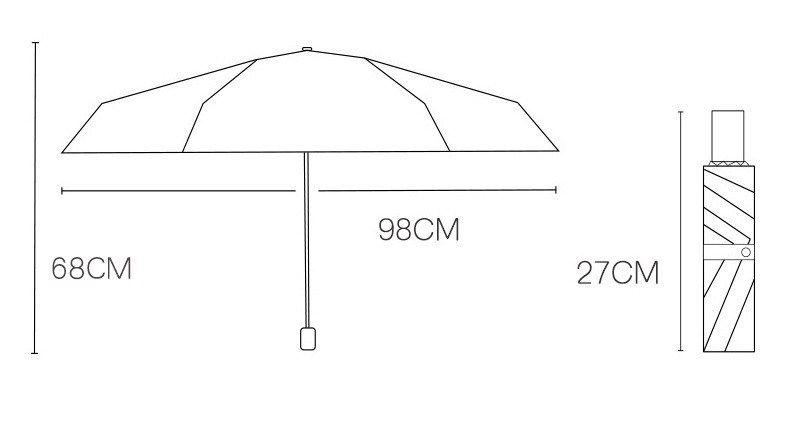 • 네이비-8 뼈 검은 접착제 자동 써니 우산