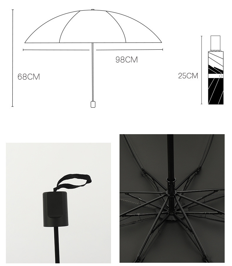 • 블랙-8 뼈 블랙 접착제 나인 플레이트 써니 우산