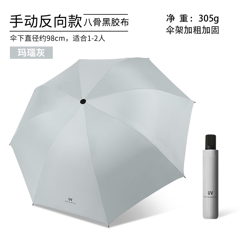 • 회색-8 뼈 검은 접착제 수동 써니 우산
