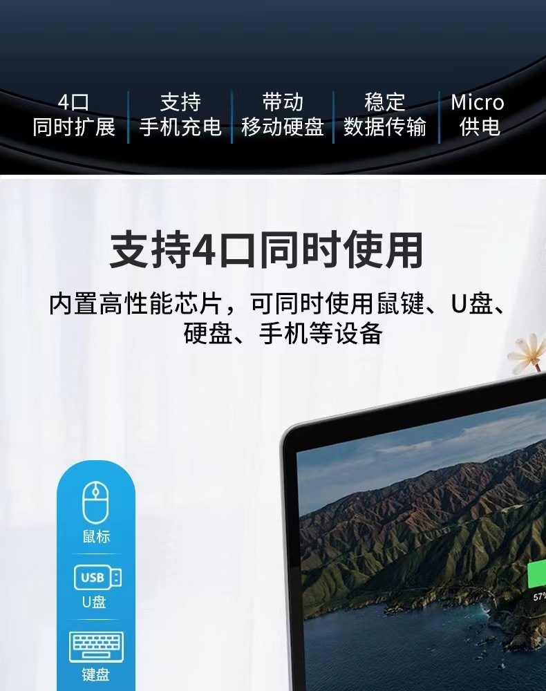 USBHUB3.0 확장기 4-in-1 허브 타입C 확장 도크 1대4 컴퓨터 분배기 확장 도크