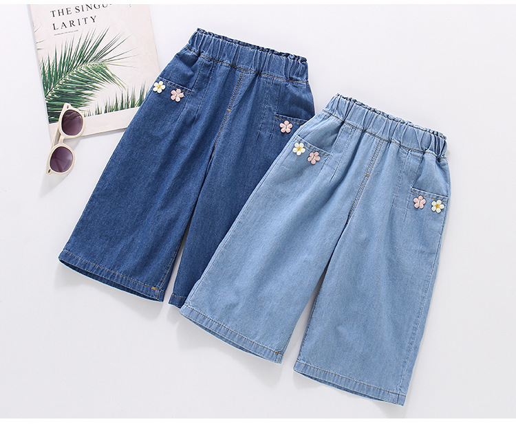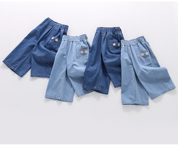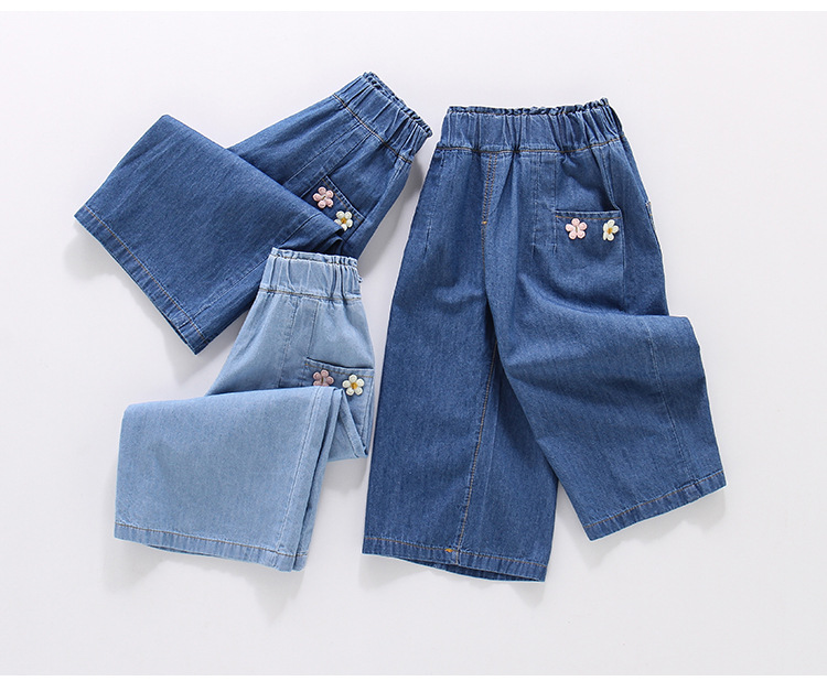 순수한 면화 소녀의 데님 넓은 다리 바지 여름 얇은 아기 소녀 청바지 느슨한 캐주얼 바지 여름 서양식스토어 가기