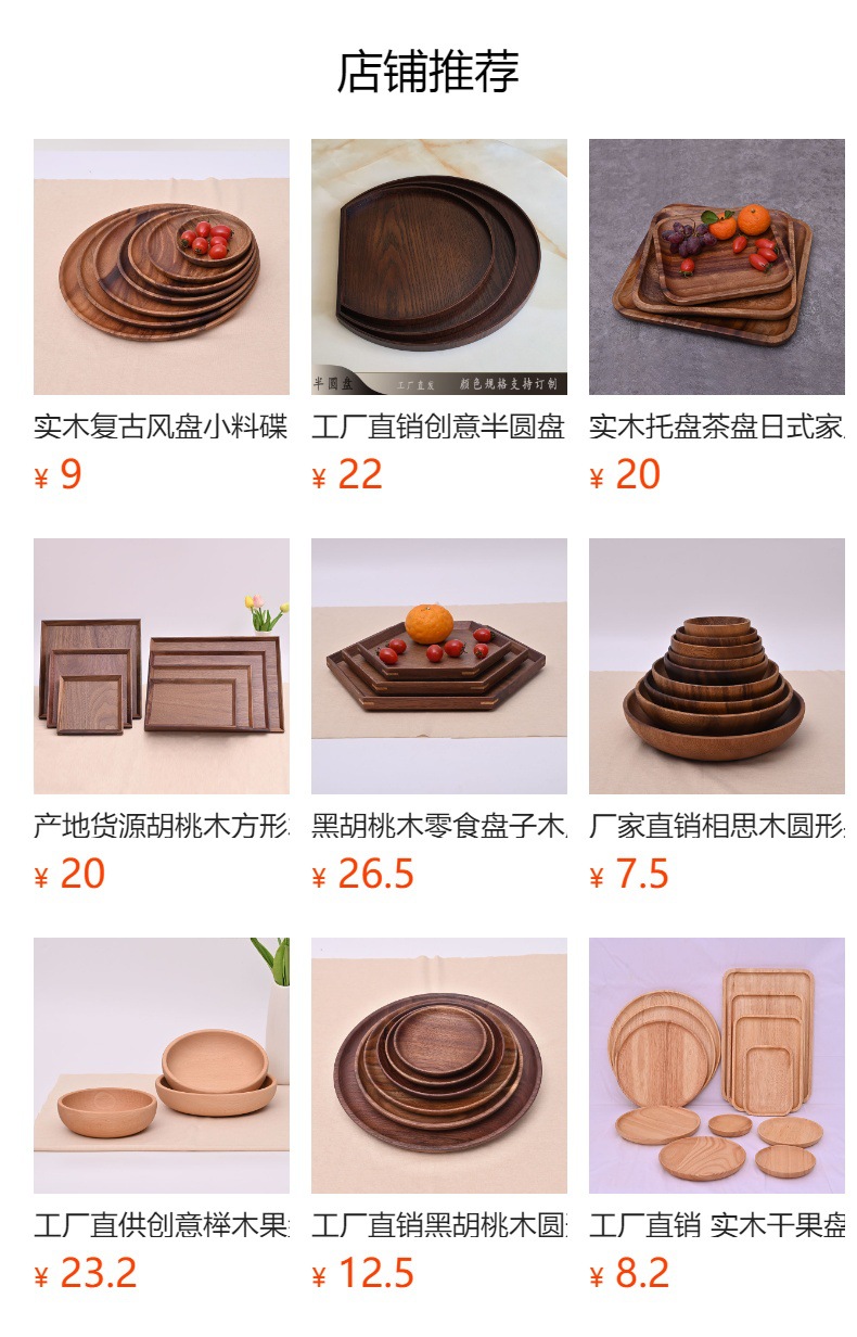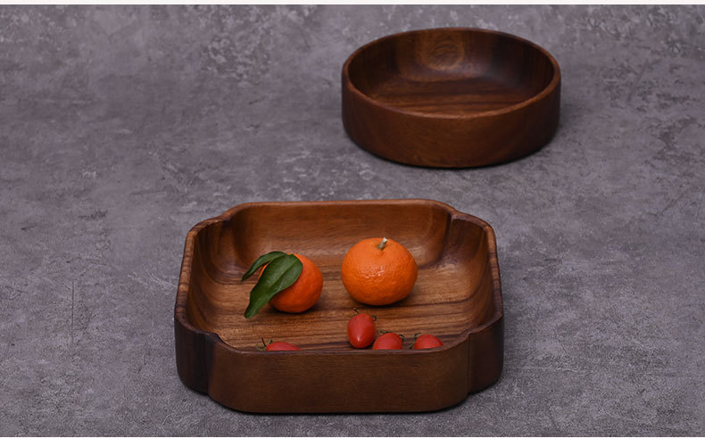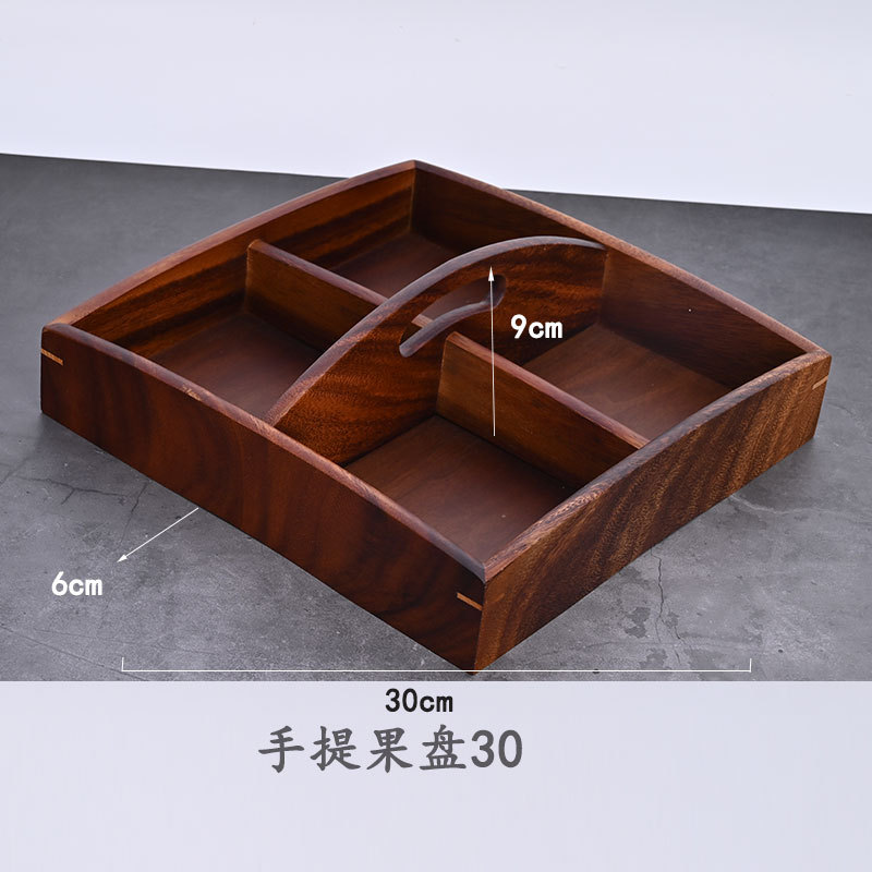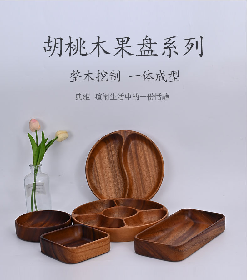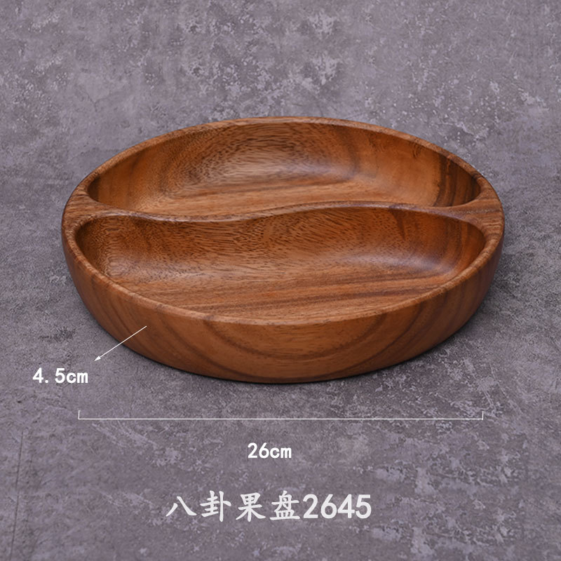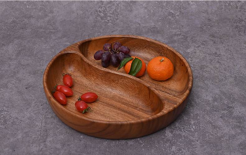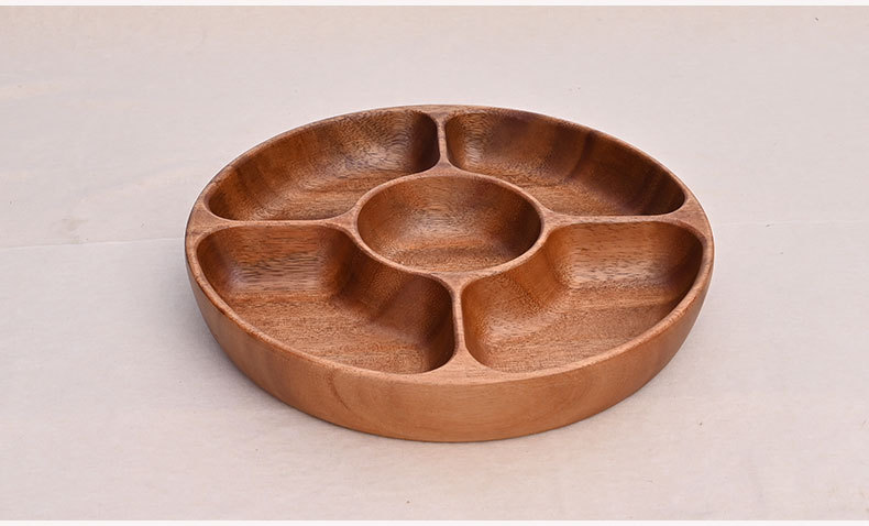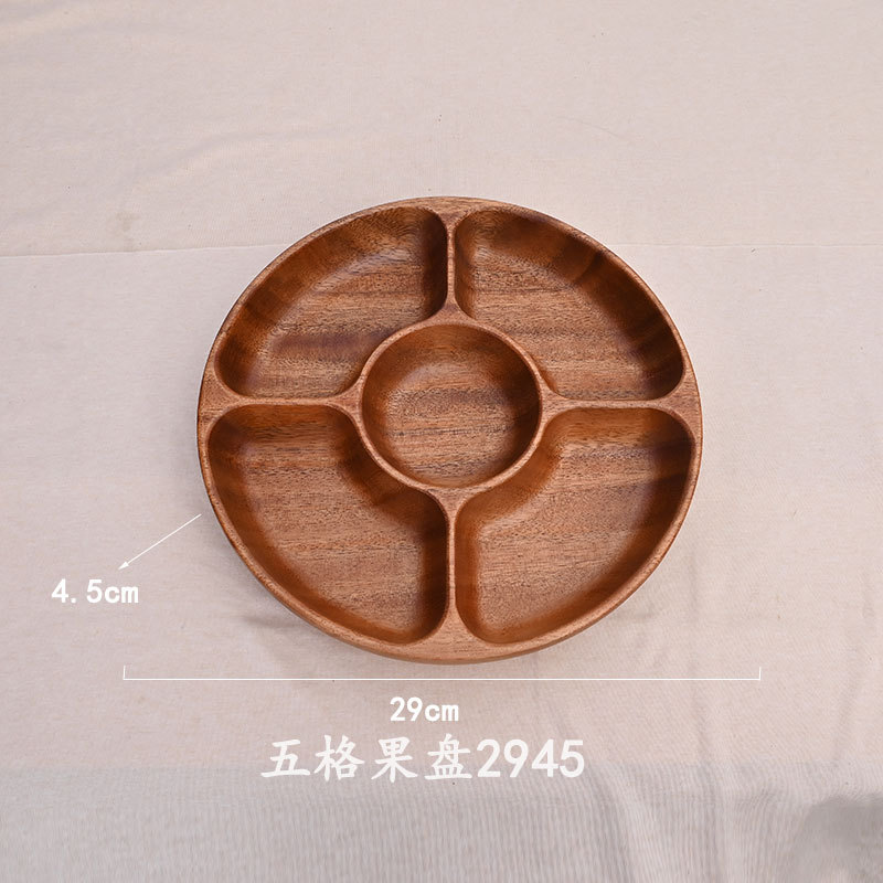 공장 직접 라운드 나무 그리드 플레이트 보편적 인 과일 가십 나무 플레이트 간단한 호두 플레이트 대량 할인스토어 가기