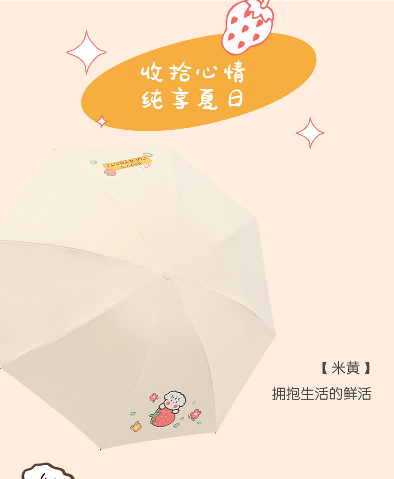 새로운 파라다이스 우산 블랙 접착제 자외선 방지 과일 햇빛 우산 경량 휴대용 접이식 맑고 비오는 우산