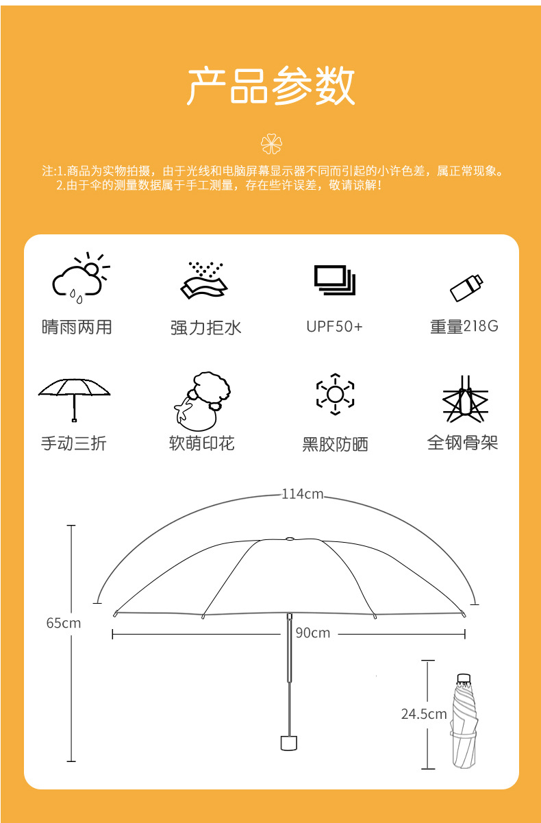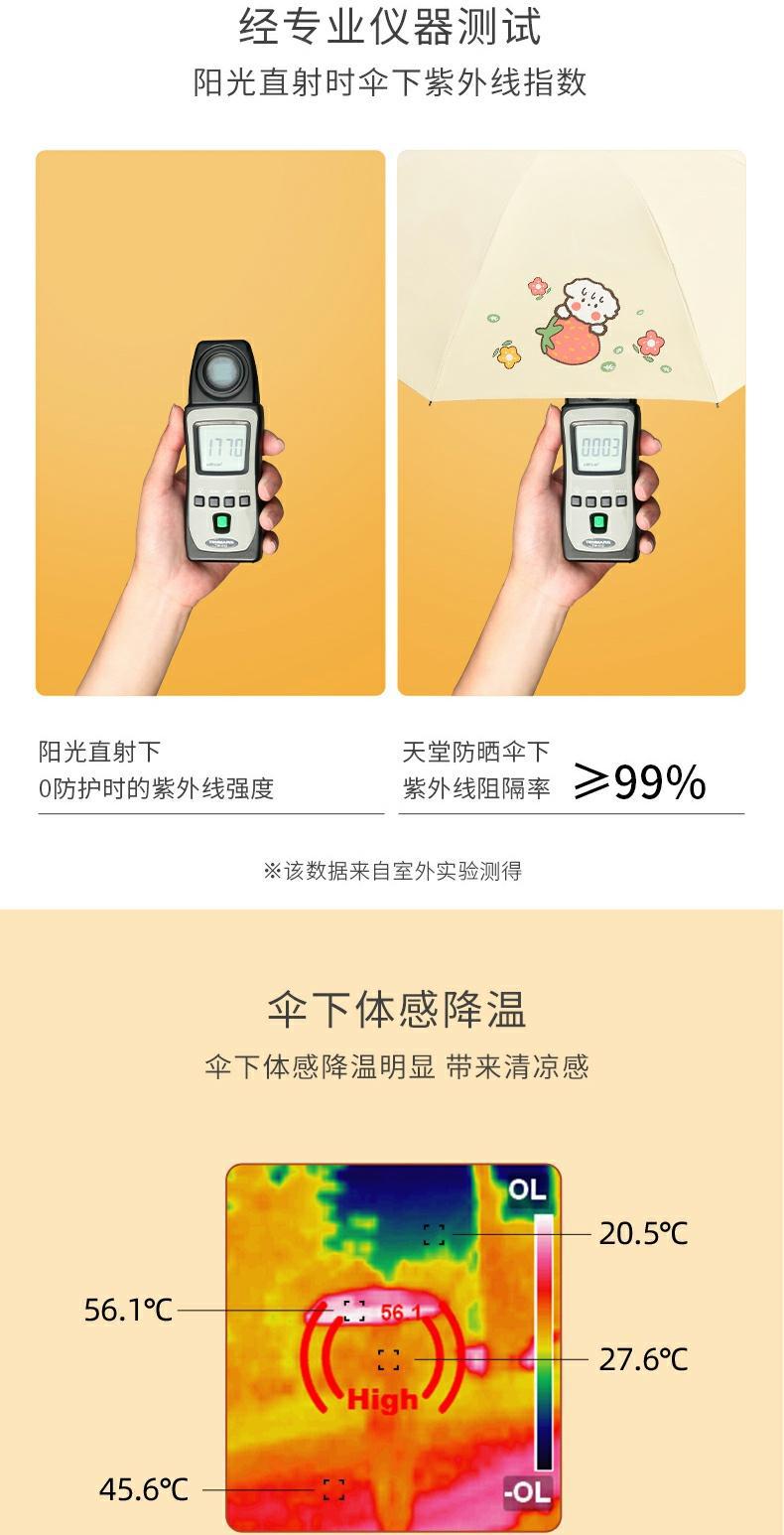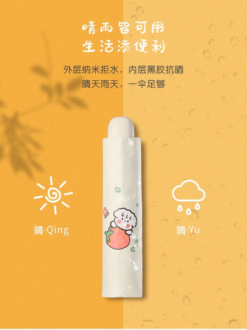 새로운 파라다이스 우산 블랙 접착제 자외선 방지 과일 햇빛 우산 경량 휴대용 접이식 맑고 비오는 우산스토어 가기