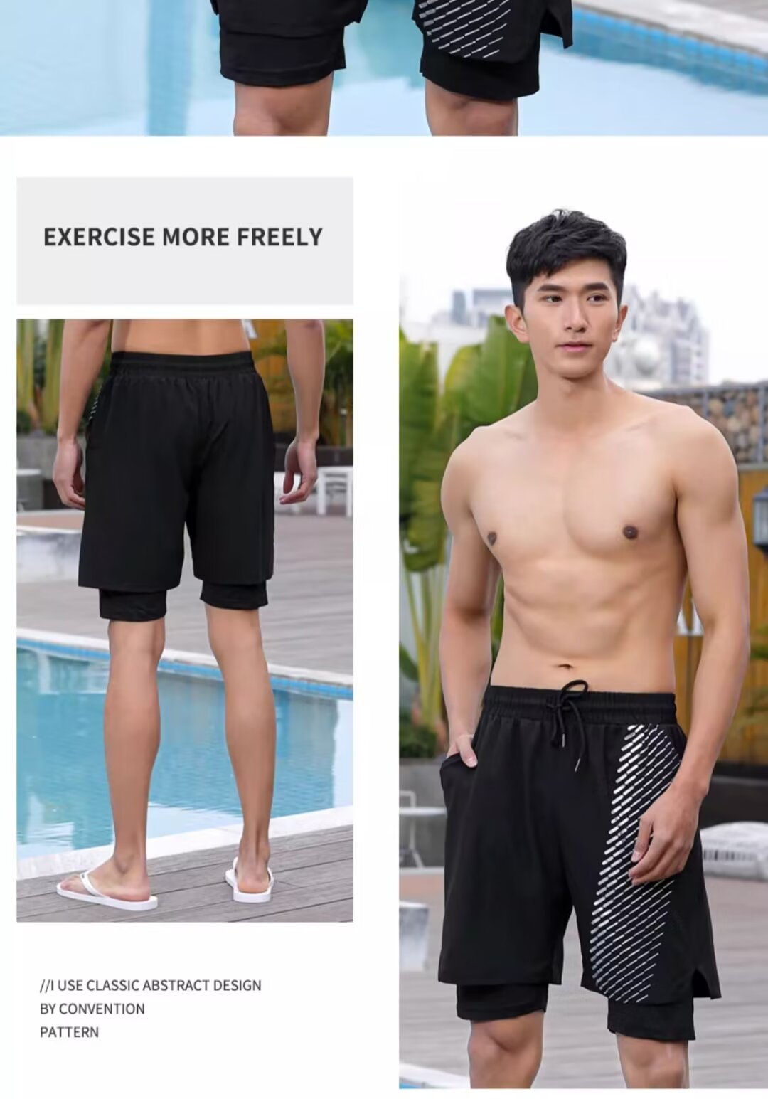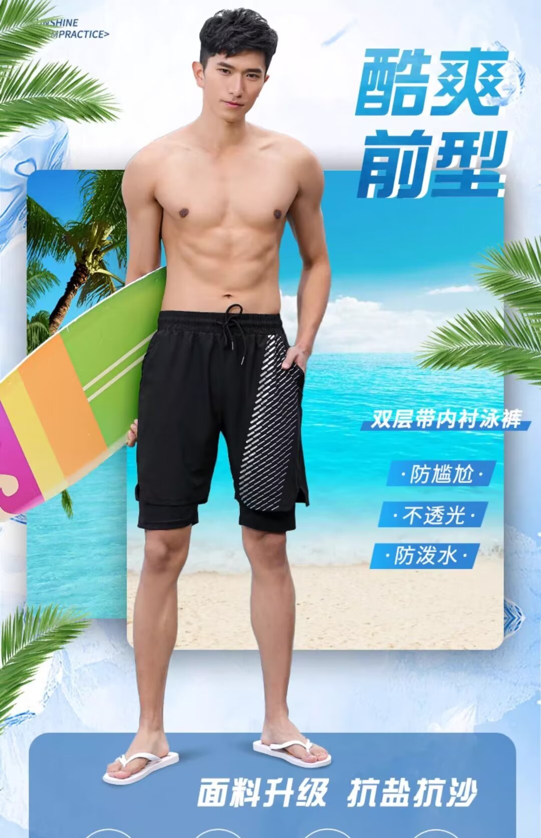 가짜 투피스 수영 트렁크 남자의 빠른 건조 아이스 실크 방황 세트 성인 전문 평면 비치 바지 수영 장비스토어 가기