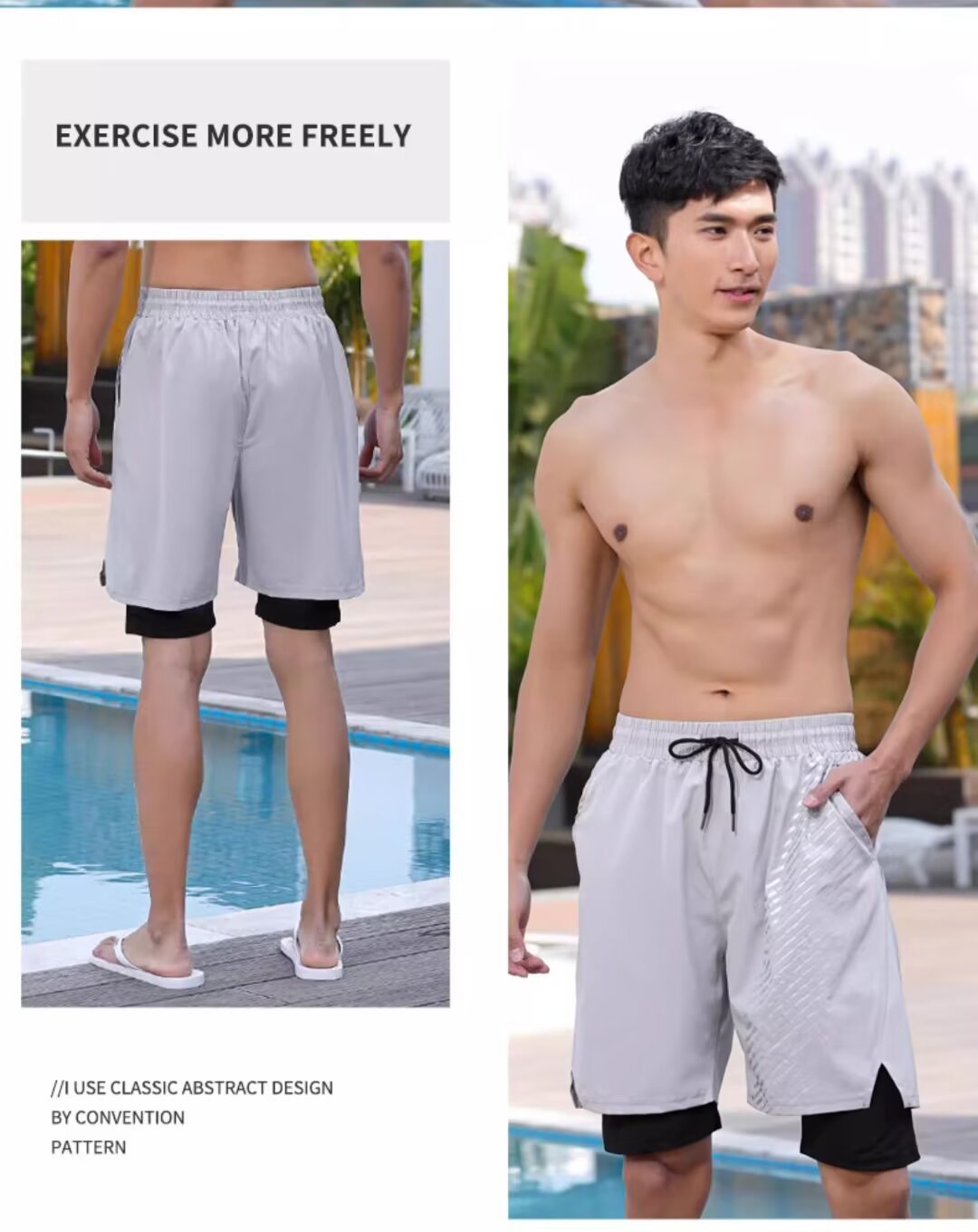 가짜 투피스 수영 트렁크 남자의 빠른 건조 아이스 실크 방황 세트 성인 전문 평면 비치 바지 수영 장비