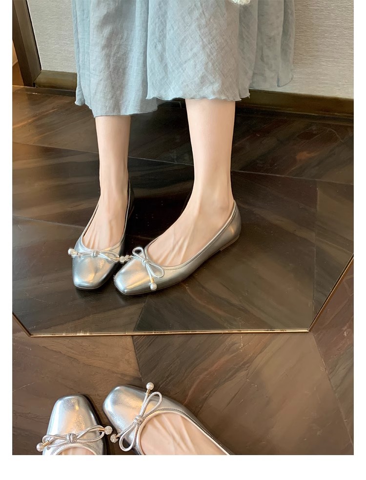 포도 엄마 studiolee ~ 클래식 라운드 활 얕은 입 부드러운 바닥 광장 머리 진주 발레 실버 여성용 싱글 신발스토어 가기