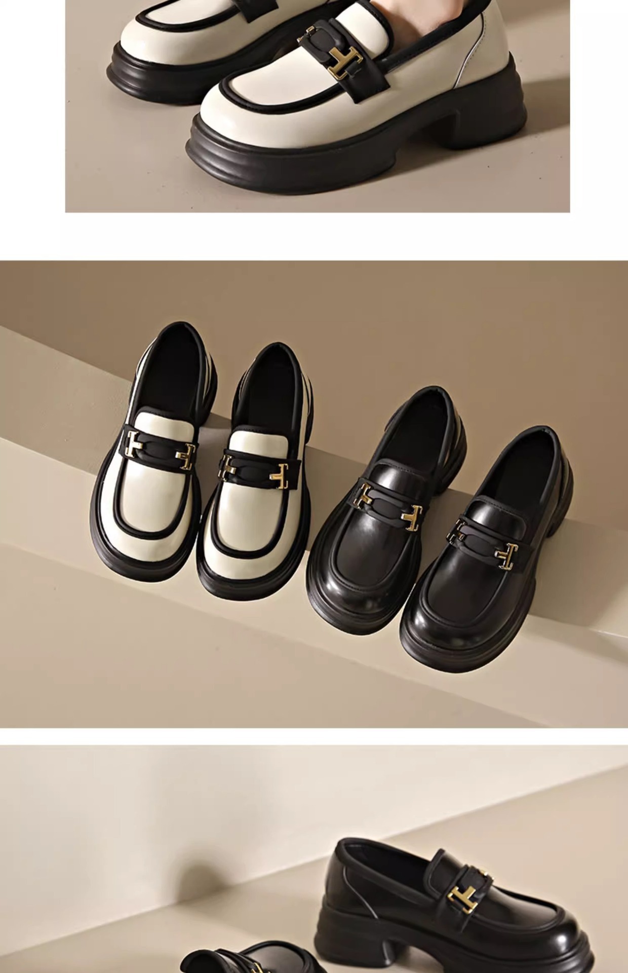 Qi Le 2024 새로운 봄과 여름 두꺼운 힐 패션 라운드 헤드 슬립 온 작은 올 매치 캐주얼 로퍼 가죽 신발 여성스토어 가기
