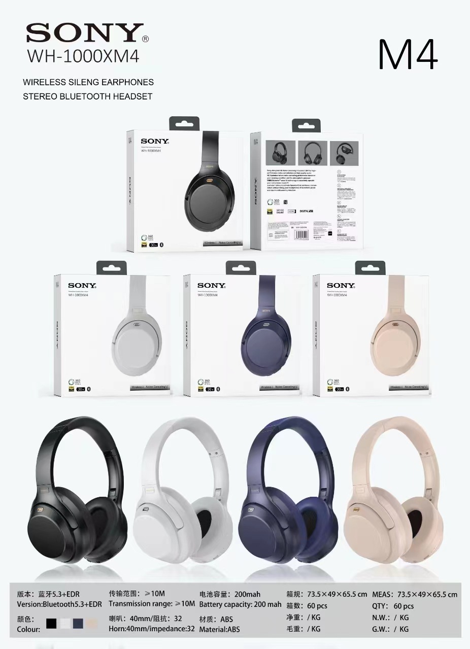 로고가있는 SONY 블루투스 헤드셋 무선 스포츠 헤드폰을위한 국경 새 WH1000XM4