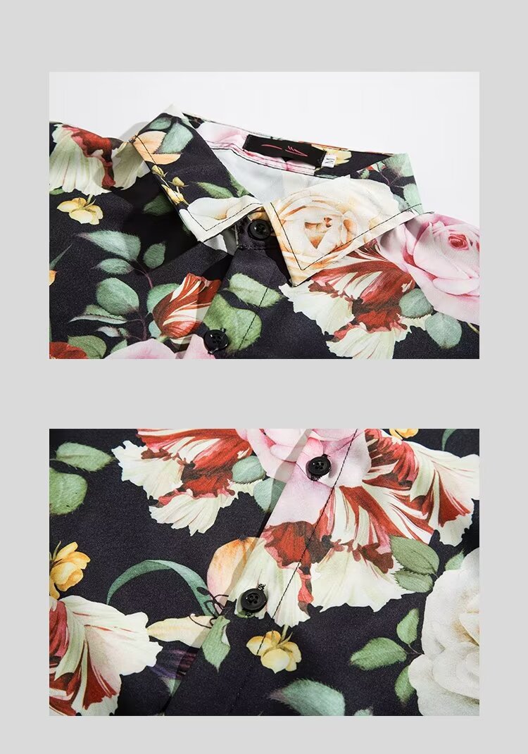 하와이 비치 셔츠 남자 반팔 여름 산야 해변 휴가 남자 타이 스타일 레트로 홍콩 스타일 꽃 셔츠