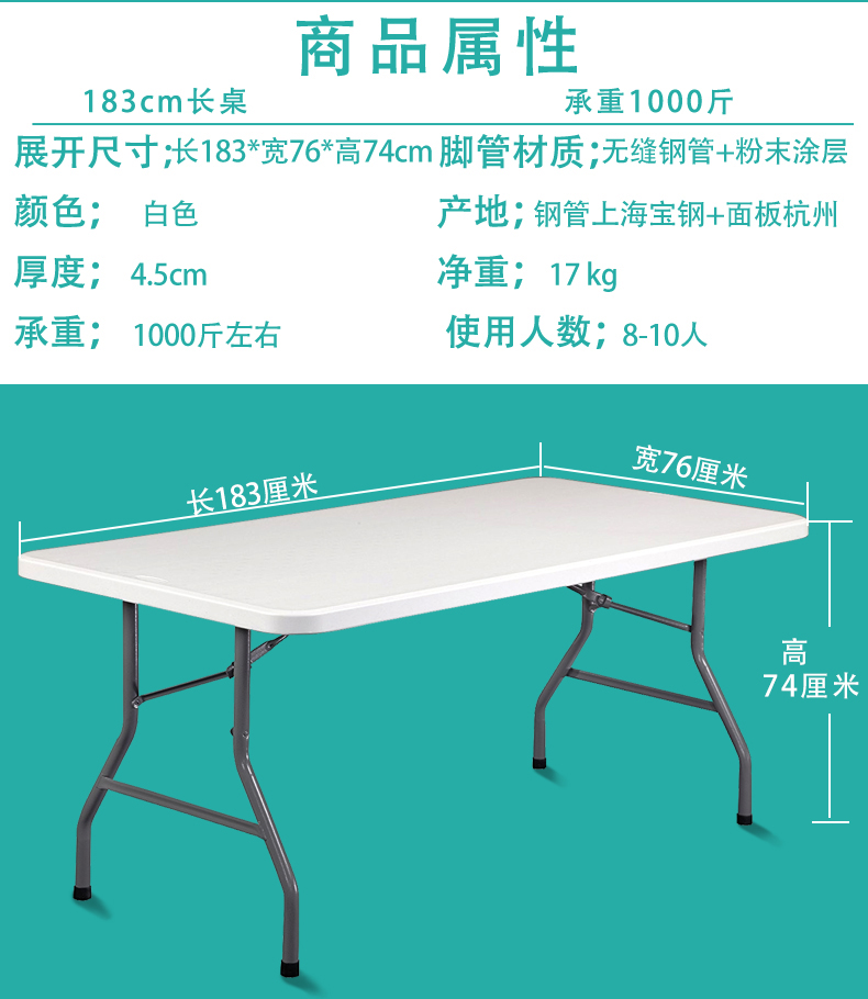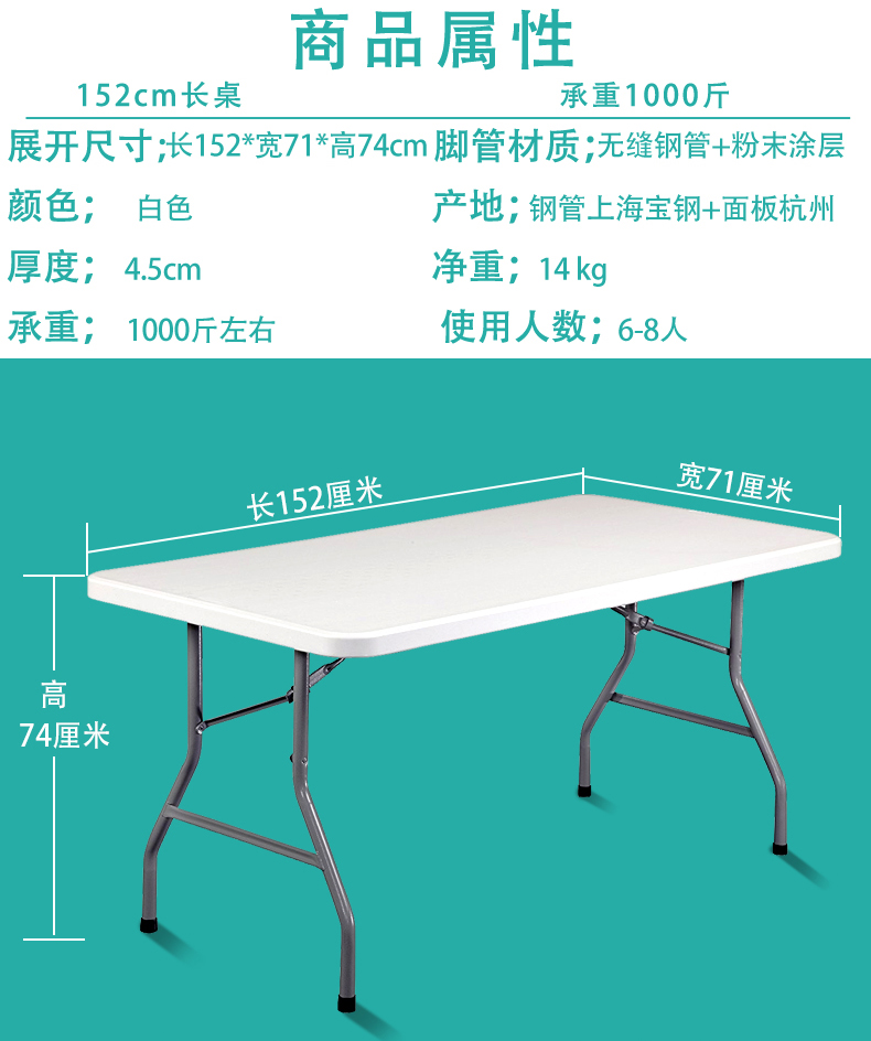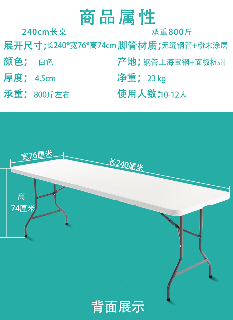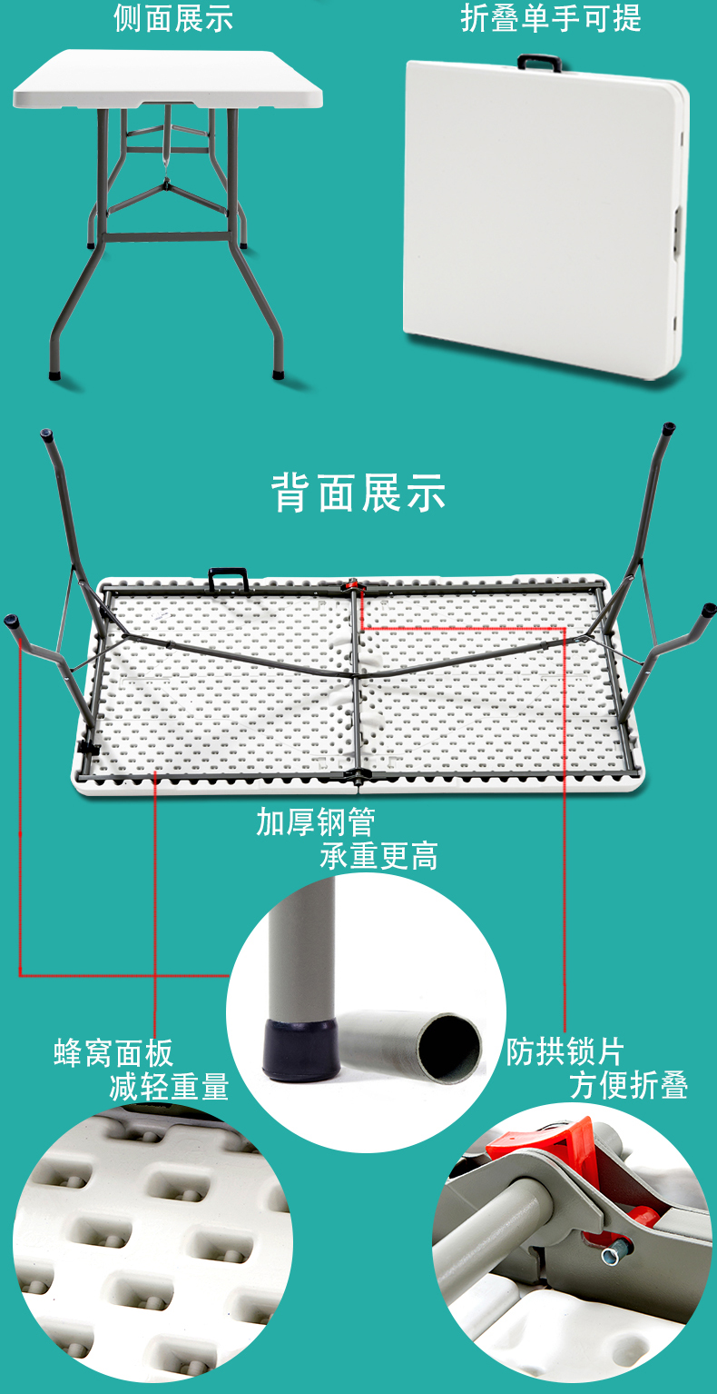 • 1.2m 접이식 흰색 다리 흰색 데스크탑 휴대용 모델