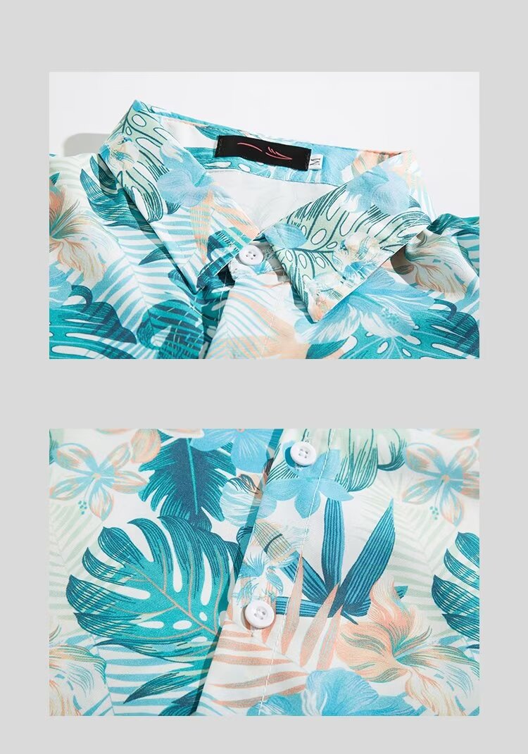 하와이 비치 셔츠 남자 반팔 여름 산야 해변 휴가 남자 타이 스타일 레트로 홍콩 스타일 꽃 셔츠스토어 가기