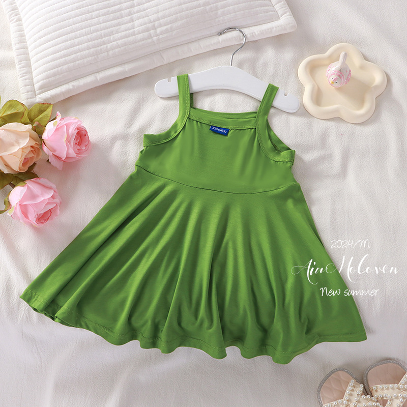 2024 어린이 여름 새 치마 소녀 한국 원피스 아기 스트랩 스커트 어린이 원피스 도매