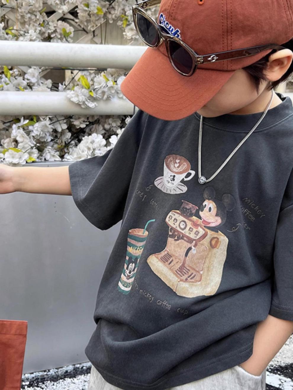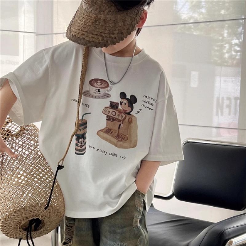 미국 만화 T2024 봄/여름 새로운 아동복 소년 반팔 티셔츠 인쇄 화이트 탑 루즈베이스