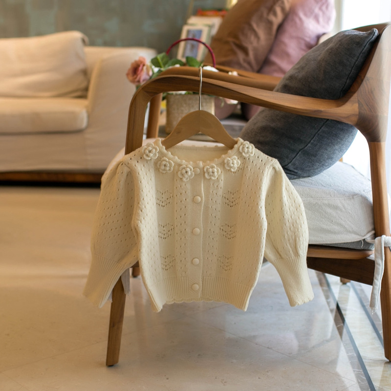 Dropshipping 봄과 가을 어린이 새로운 입체 꽃 칼라 소녀 카디건 스웨터 J760
