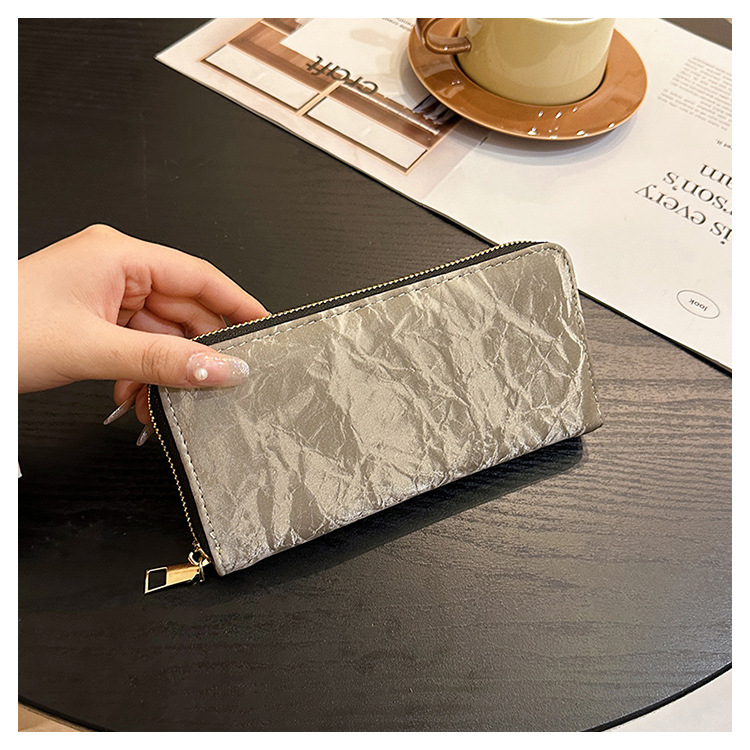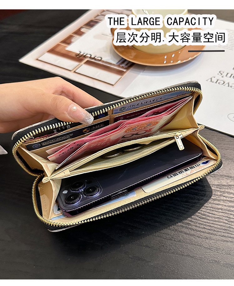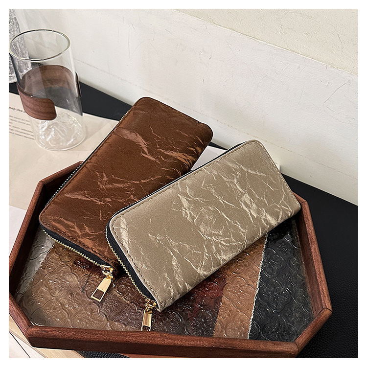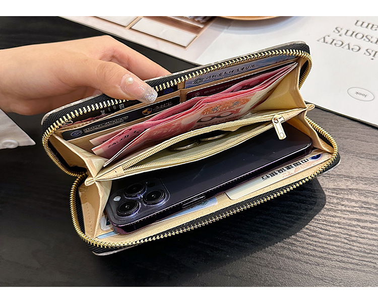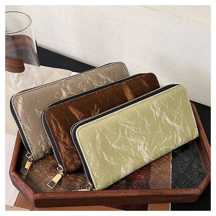 한국 스타일 여성 지갑 새로운 2024 핸드백 긴 지퍼 골드 벨벳 핸드 지갑 대용량 휴대 전화 가방 트렌디스토어 가기