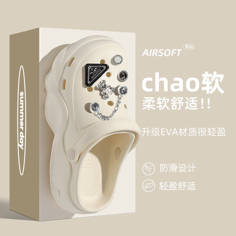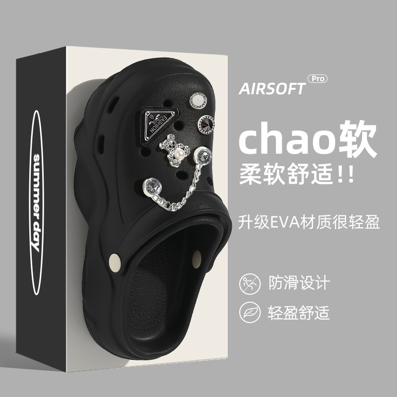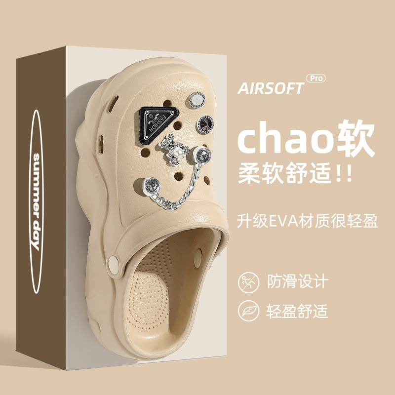 두꺼운 밑창 여성용 여름 아웃도어 신발 2025 신상 야외 해변용 인스 스타일 앞코가 막힌 슬리퍼 여성 도매스토어 가기