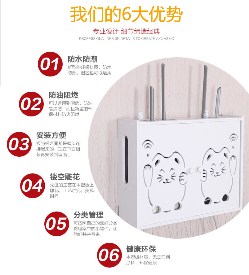 멀티미디어 컬렉션 박스 차폐 무선 라우터 선반 벽 걸이 장식 스토리지 박스 스토리지 랙 펀치-무료