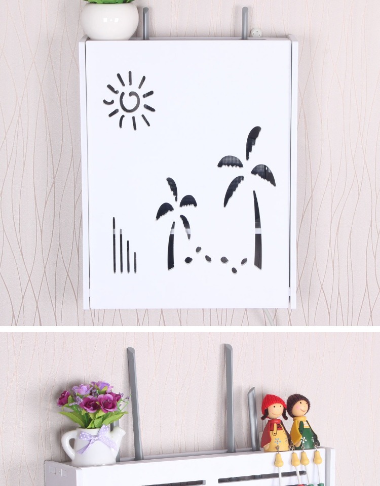 멀티미디어 컬렉션 박스 차폐 무선 라우터 선반 벽 걸이 장식 스토리지 박스 스토리지 랙 펀치-무료스토어 가기
