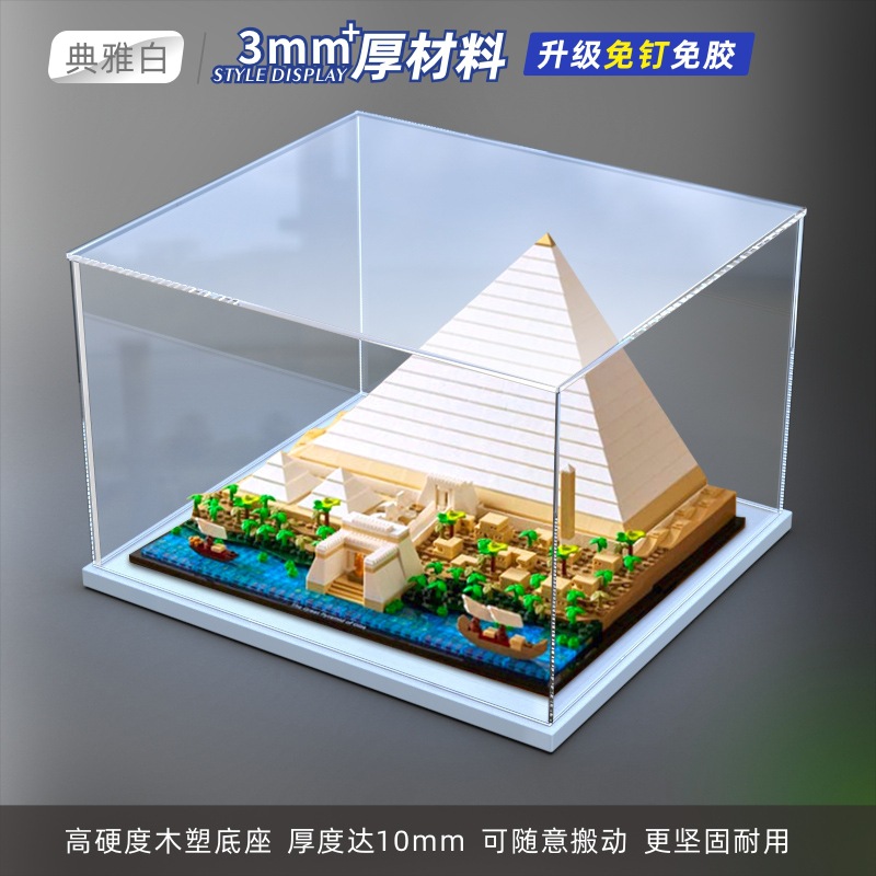 HD 아크릴 레고 21058 기자 위대한 피라미드 빌딩 블록 장난감 모델 디스플레이 먼지 커버 저장 상자