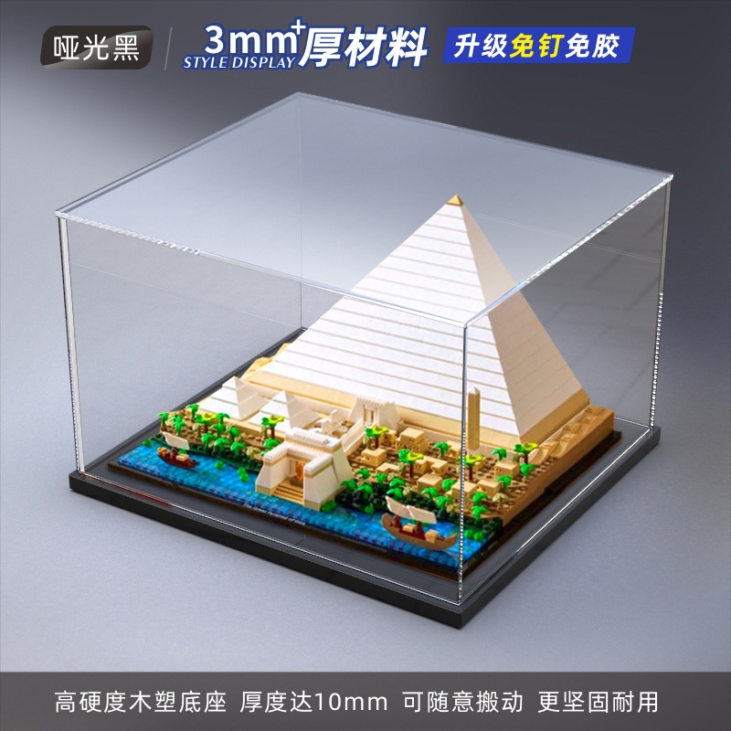 HD 아크릴 레고 21058 기자 위대한 피라미드 빌딩 블록 장난감 모델 디스플레이 먼지 커버 저장 상자스토어 가기