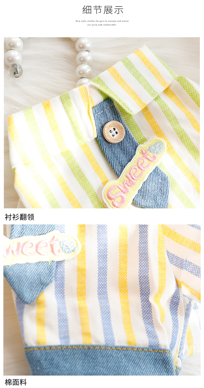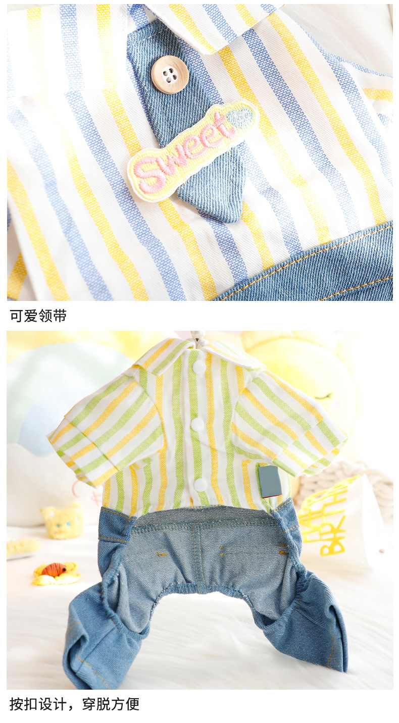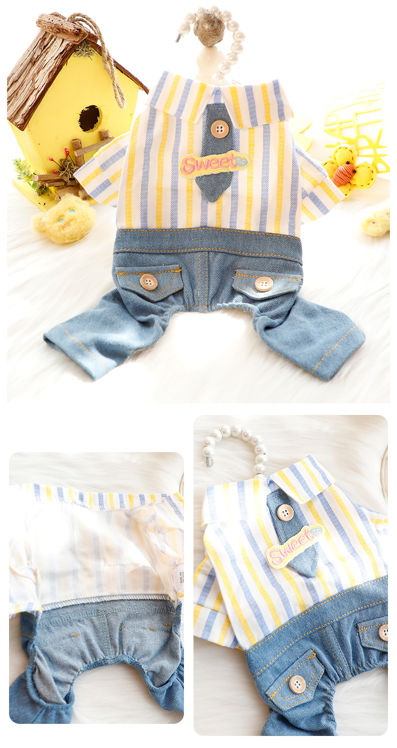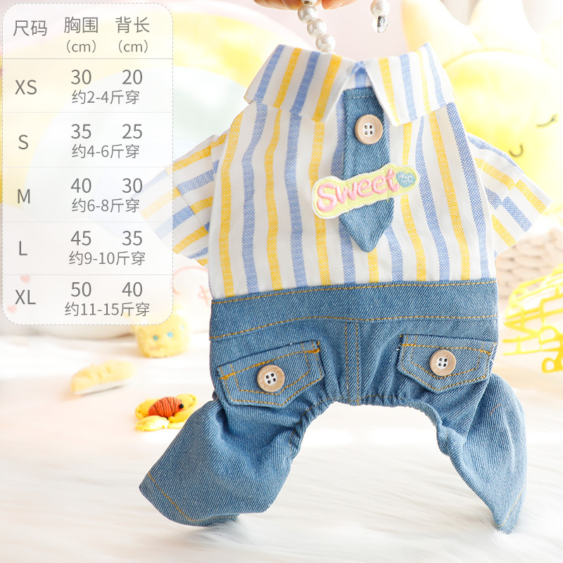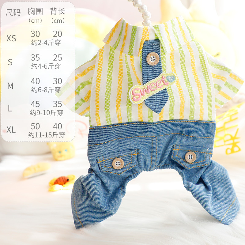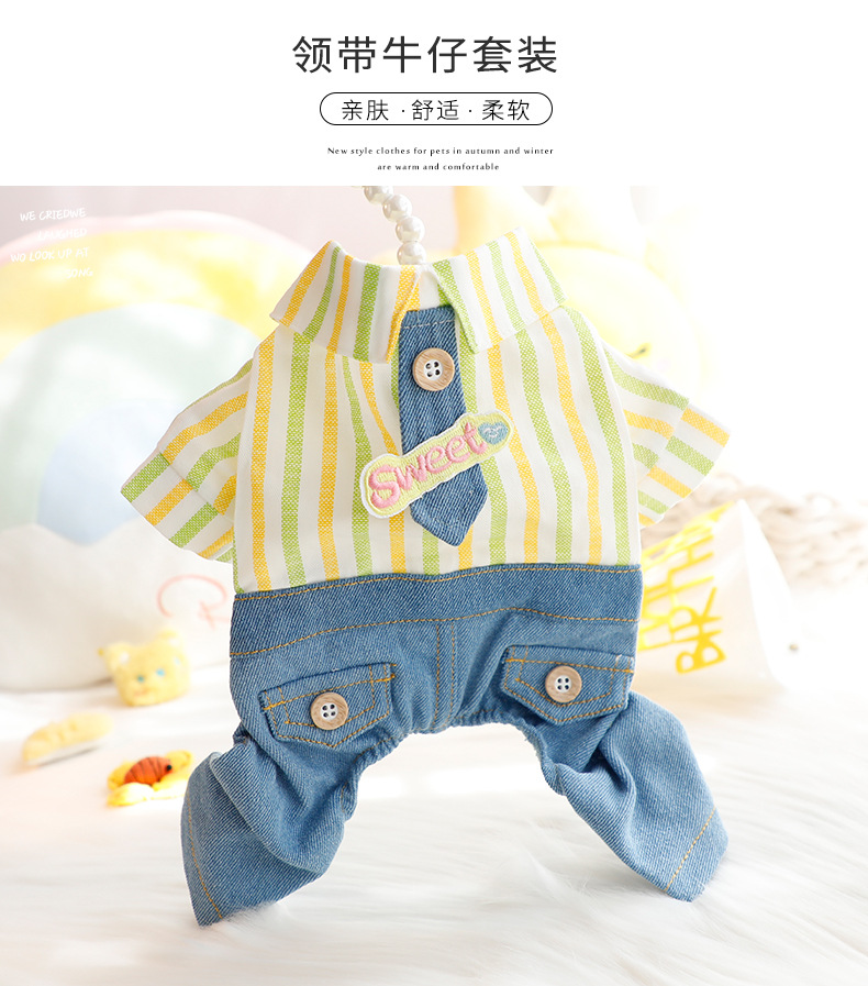 개 옷 봄과 여름 얇은 귀여운 넥타이 잘 생긴 네 다리 데님 세트 작은 개 테디 애완 동물 5723