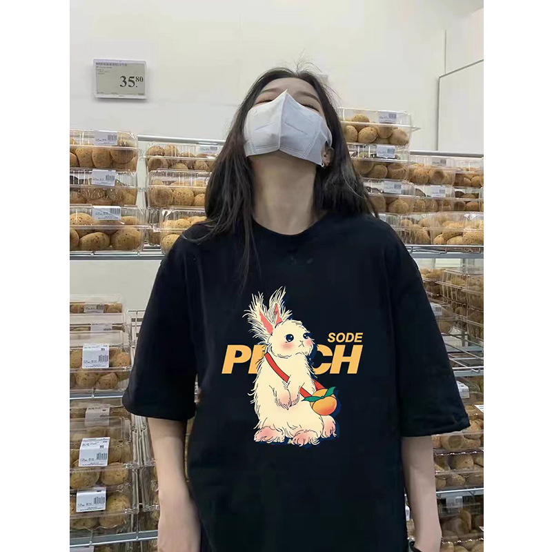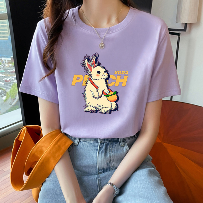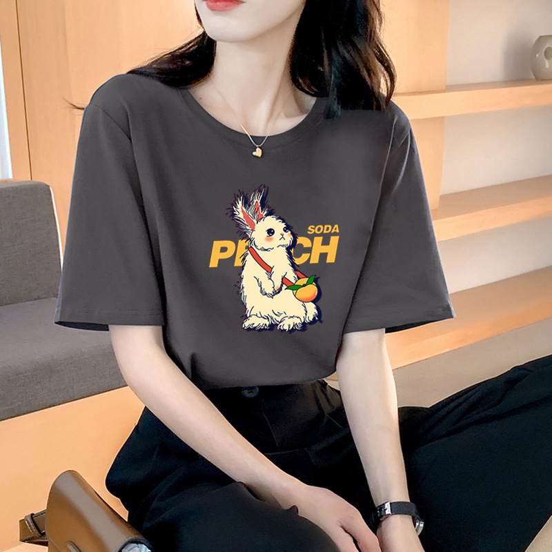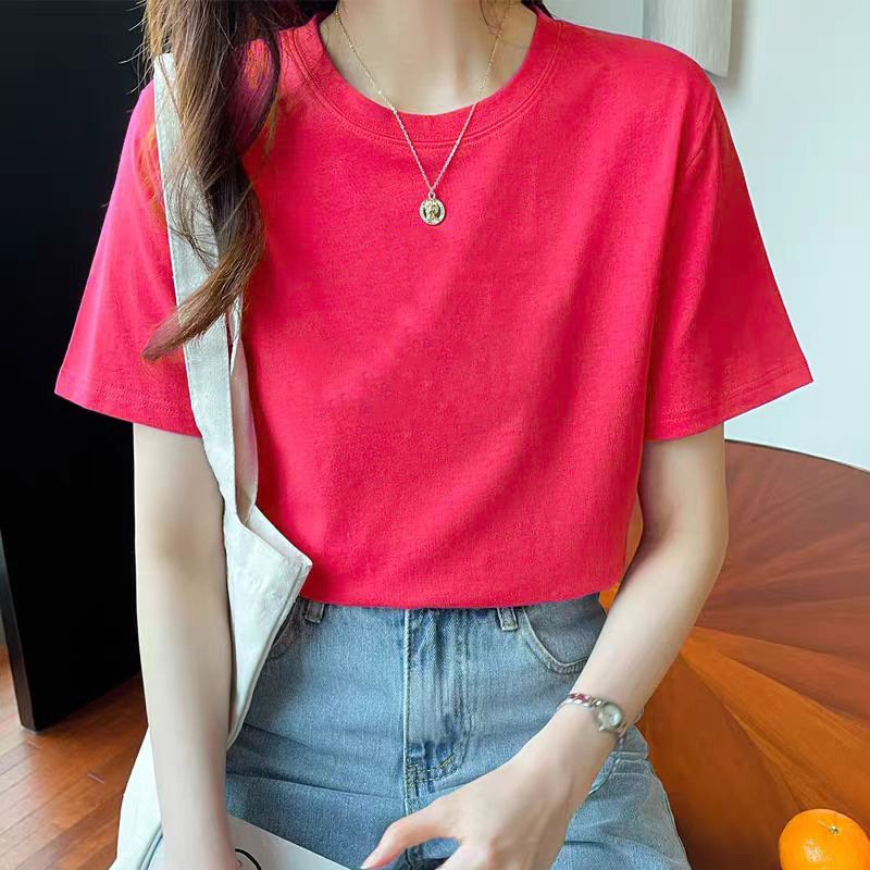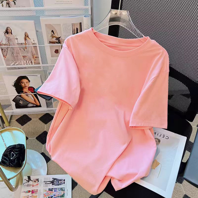 퓨어 코튼 반팔 티셔츠 여성용 2024 년 여름 새 스타일 이너 재킷 남녀 크루 넥 유행 브랜드 어깨 반소매 티셔츠 봄스토어 가기
