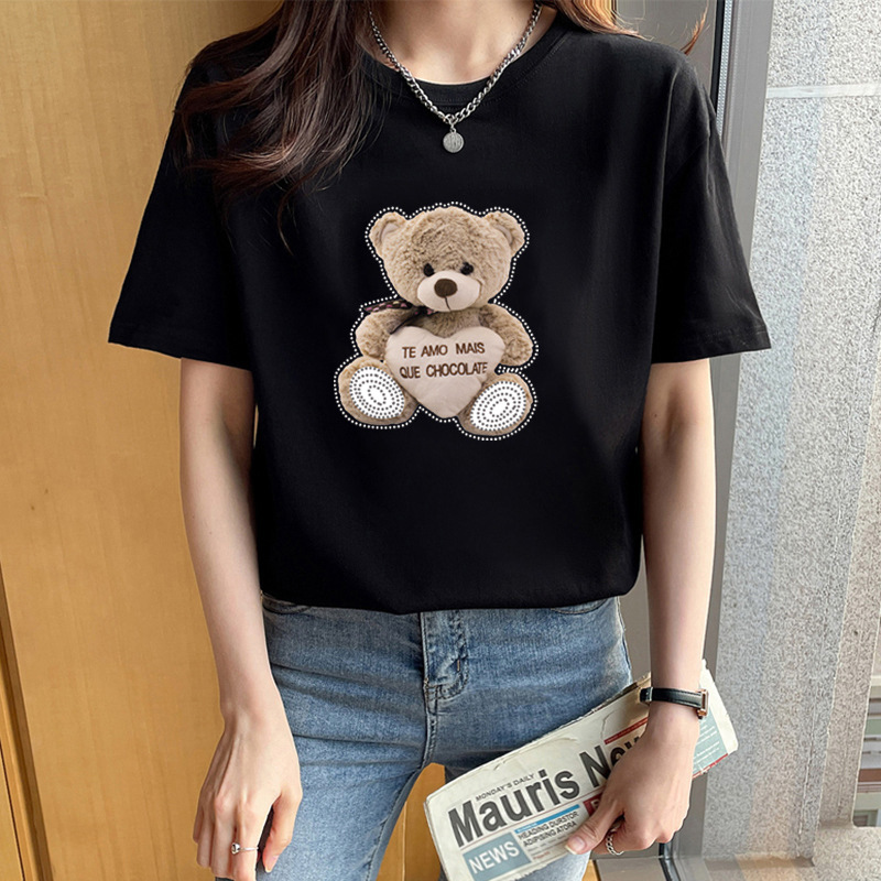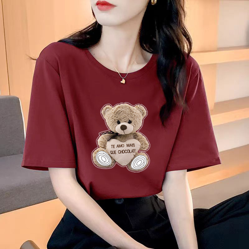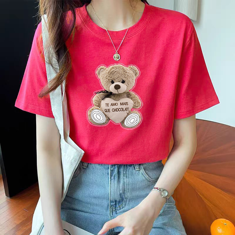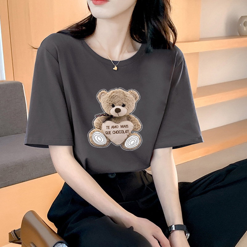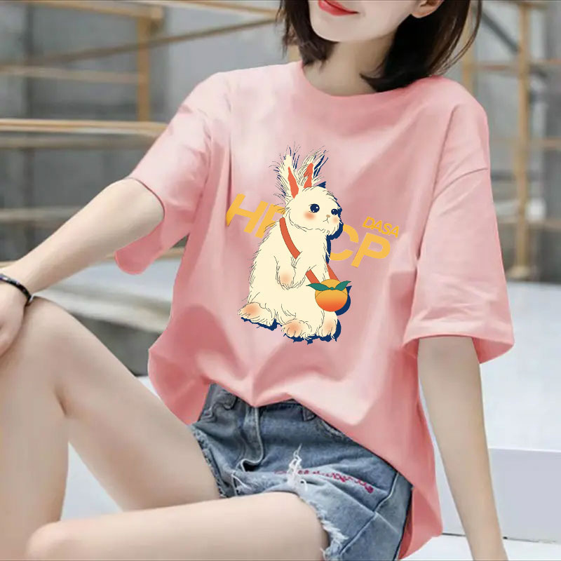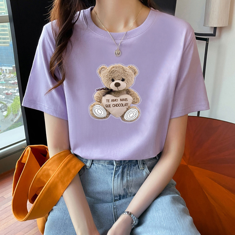 퓨어 코튼 반팔 티셔츠 여성용 2024 년 여름 새 스타일 이너 재킷 남녀 크루 넥 유행 브랜드 어깨 반소매 티셔츠 봄스토어 가기