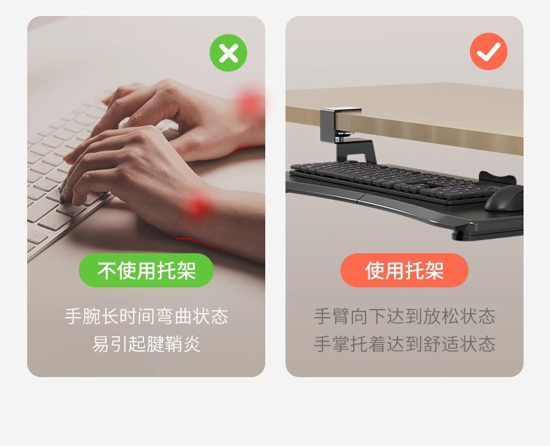 언더 데스크 키보드 브래킷 컴퓨터 데스크 키보드 랙 모바일 키보드 및 마우스 펀치 무료 인체 공학적 슬라이드 레일 브래킷스토어 가기