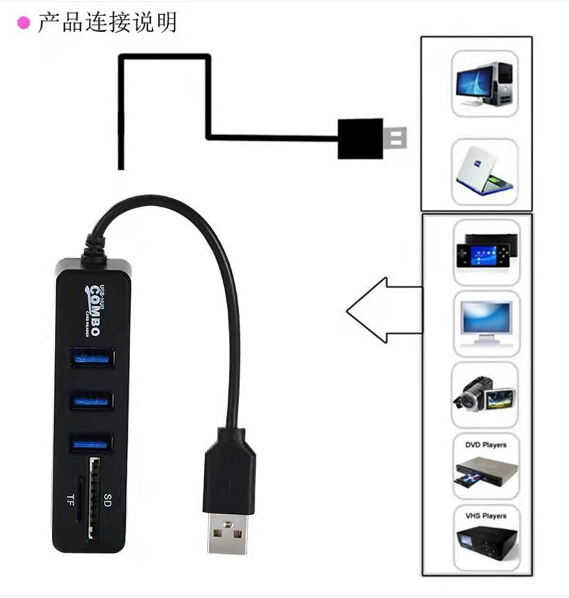 现货USB 2.0HUB集线器 分线器 3+2 SD/TF多功能USB扩展读卡器