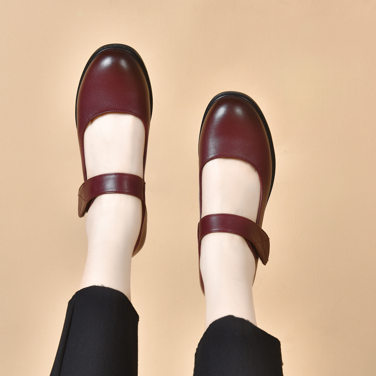 둥근 발가락 싱글 레이어 신발 여성의 2024 봄 새로운 얕은 입 버클 미드 힐 댄스 신발 엔티티를위한 간단한 하이힐