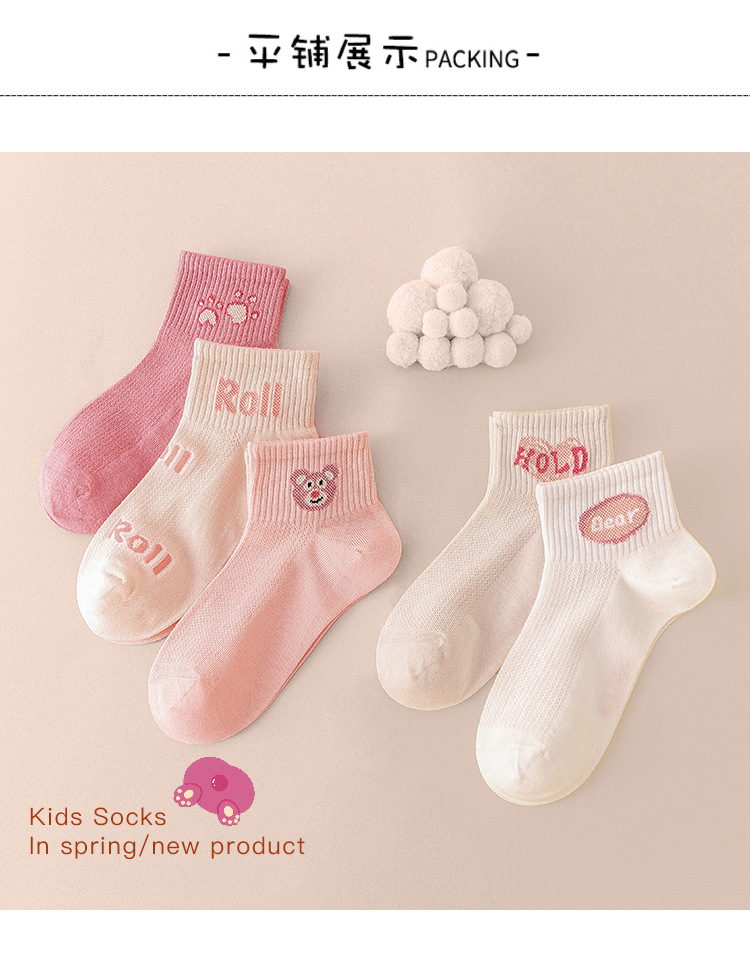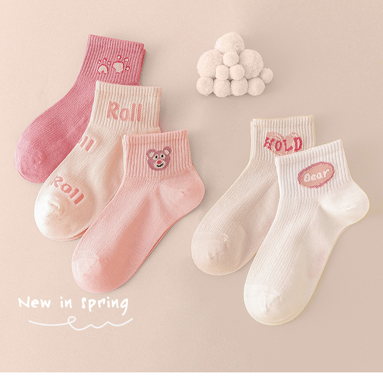 어린이 양말 여성 핑크 만화 곰 중간 양말 편지 여자 스포츠 유행 양말 봄과 여름 얇은 짧은 양말