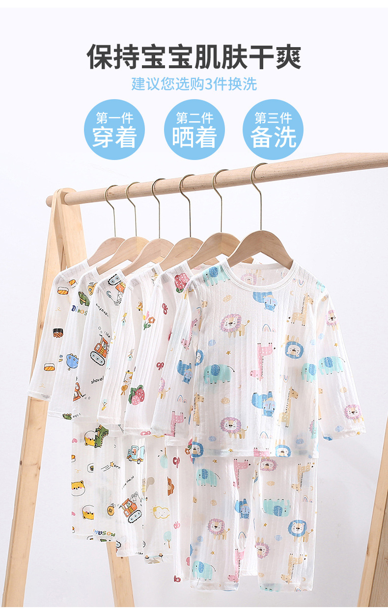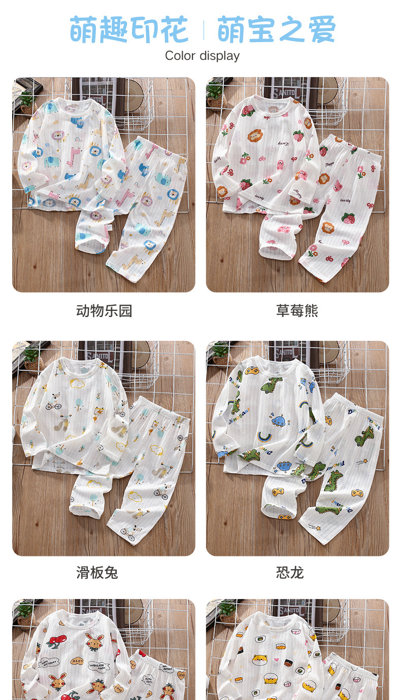 어린이 얇은 여름 잠옷 소년 홈 의류 면화 세트 여아 긴팔 에어컨 세트 아기의 봄과 가을 순수한스토어 가기