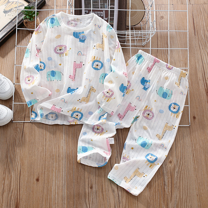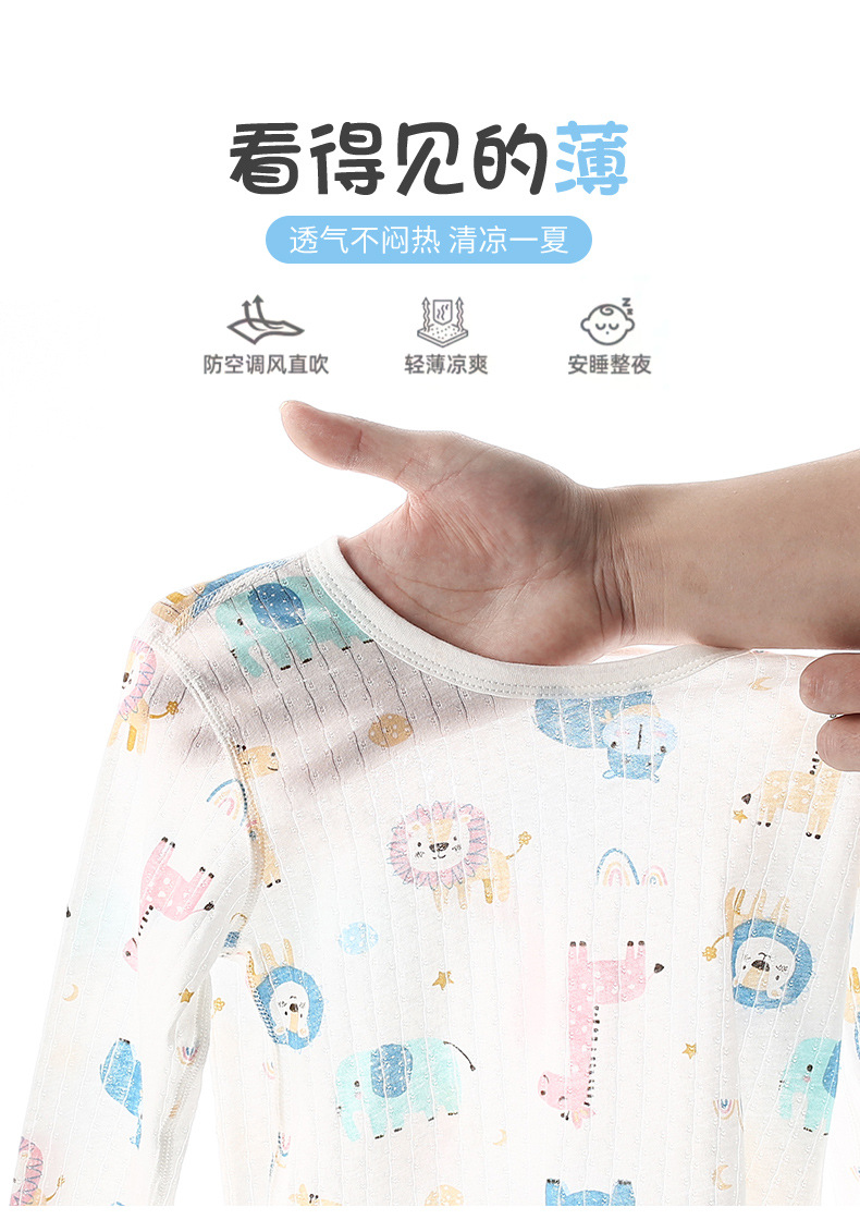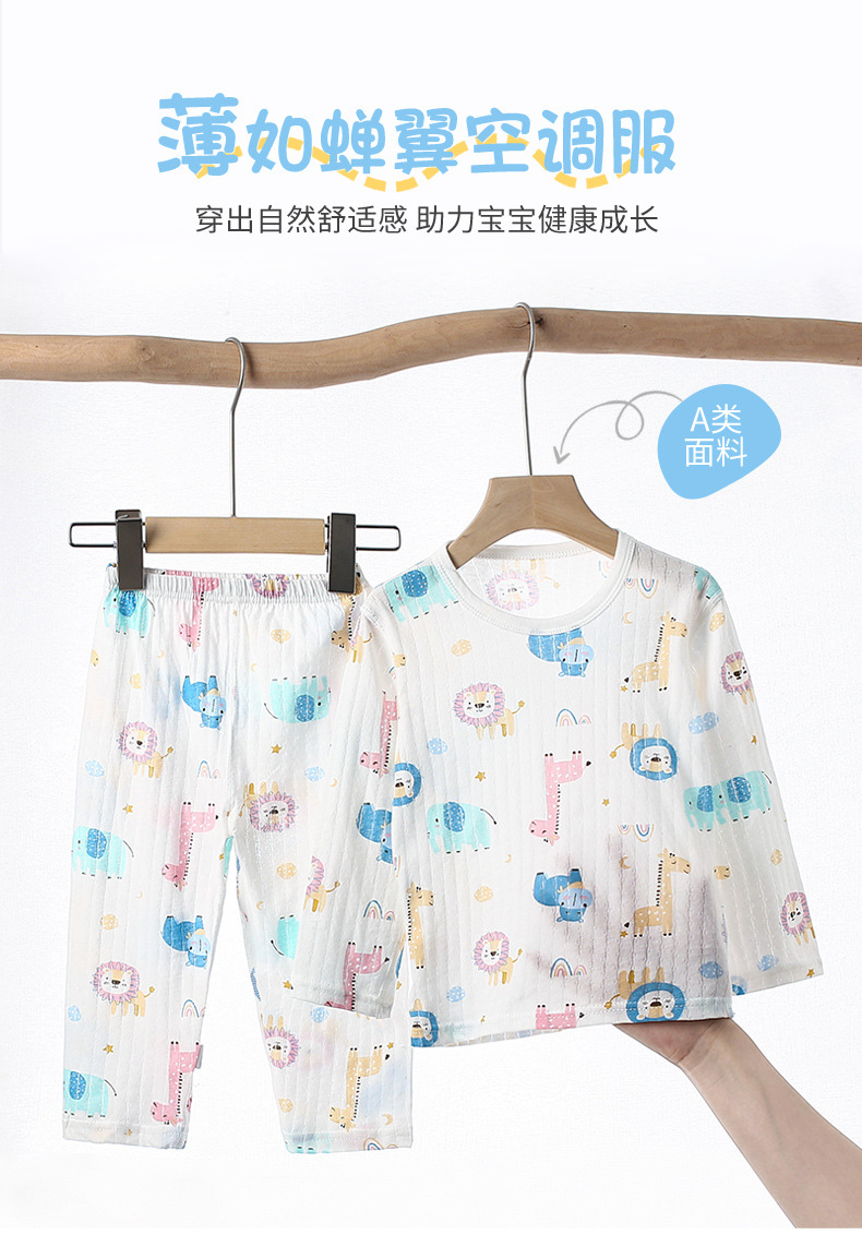 어린이 얇은 여름 잠옷 소년 홈 의류 면화 세트 여아 긴팔 에어컨 세트 아기의 봄과 가을 순수한