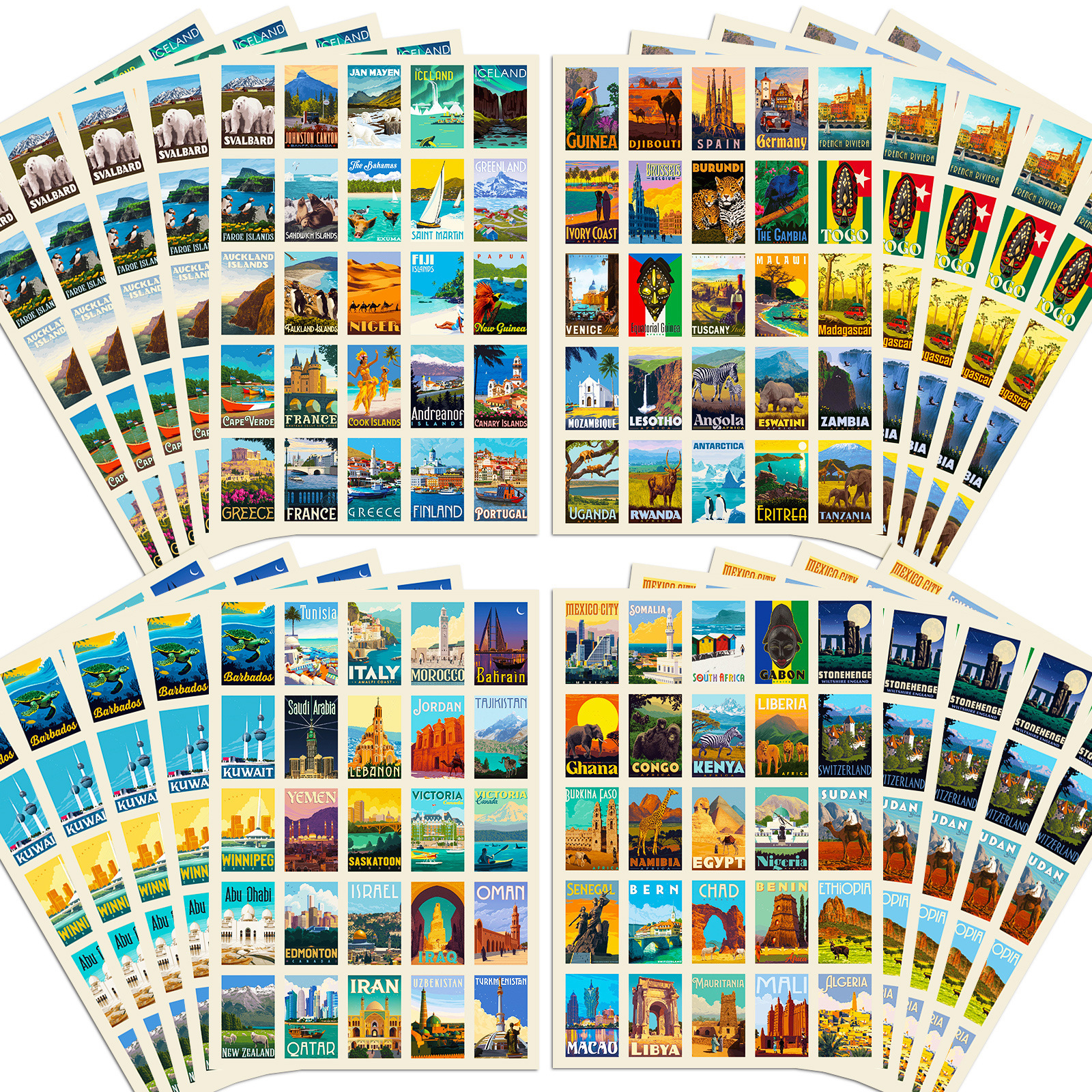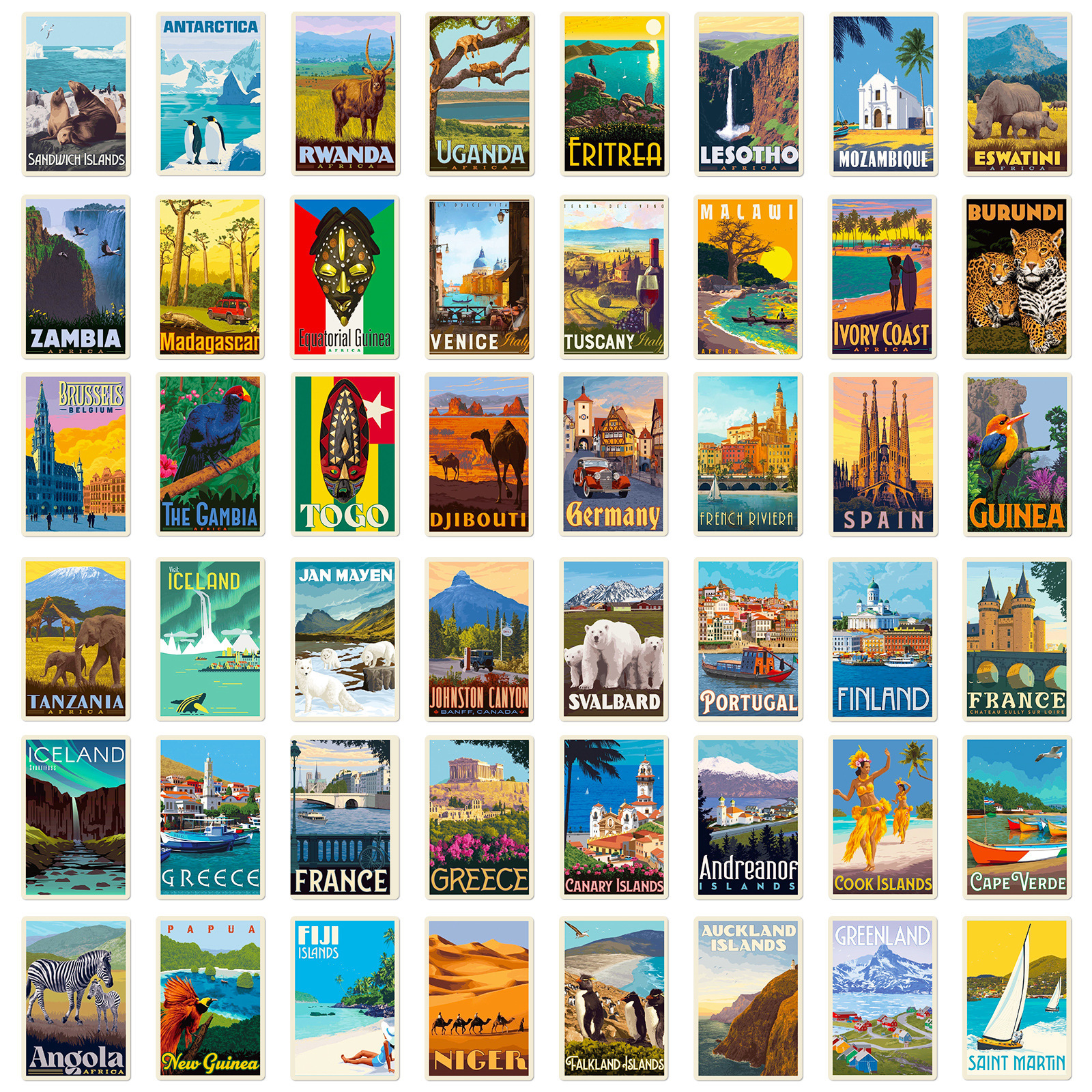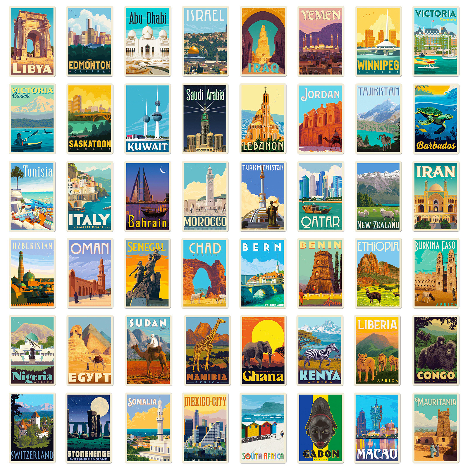 100 세계 랜드 마크 포스터 스티커 아마존 레트로 유럽과 미국 포스터 클래식 영화 스티커 4/팩스토어 가기