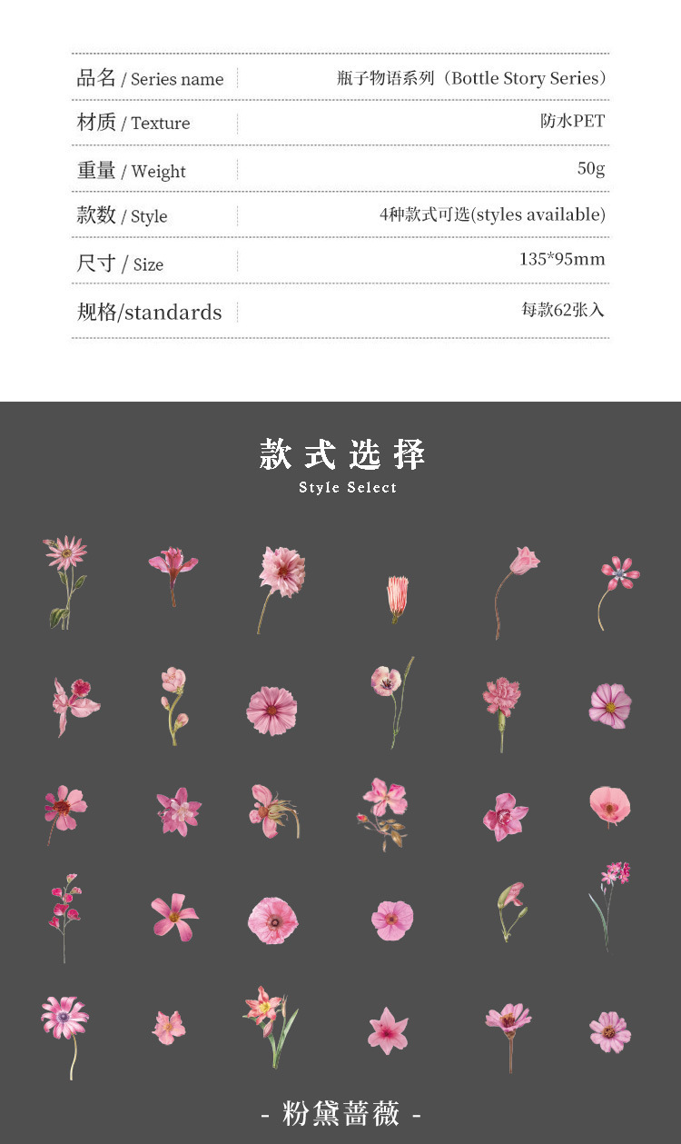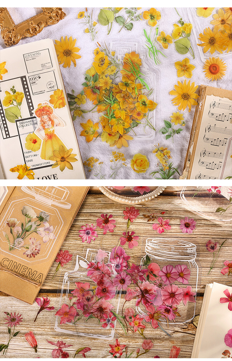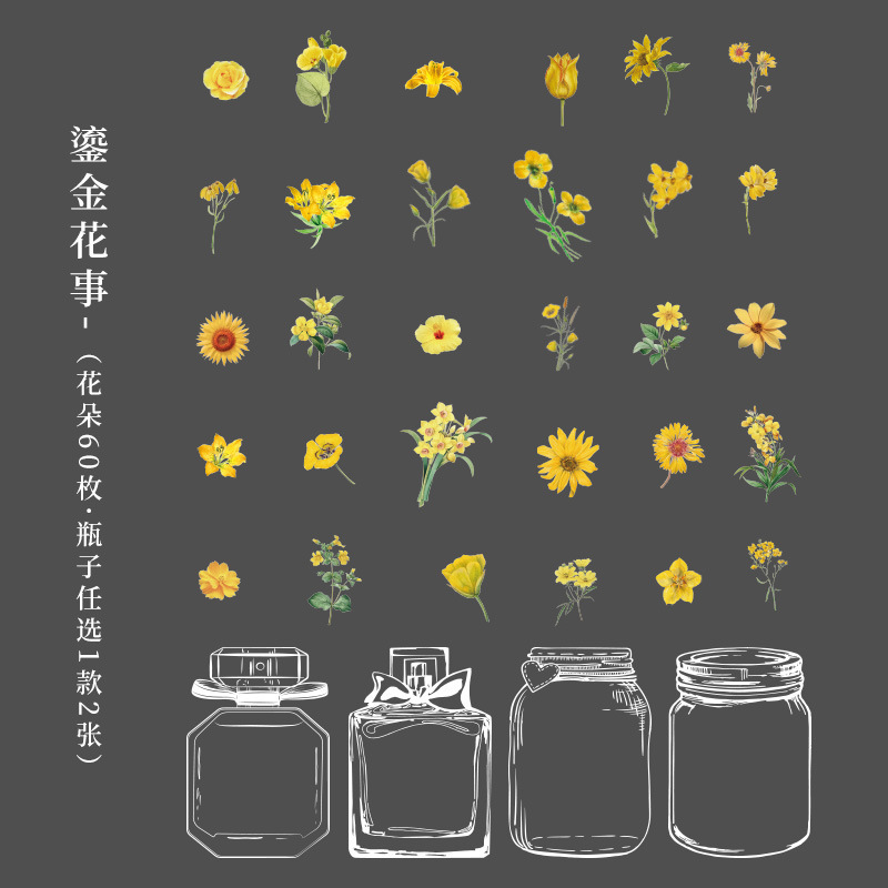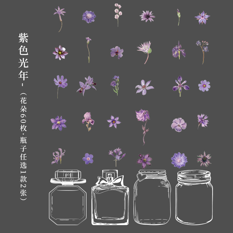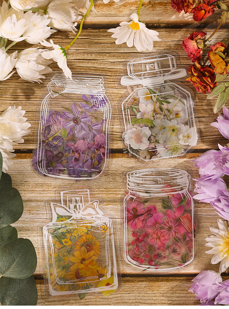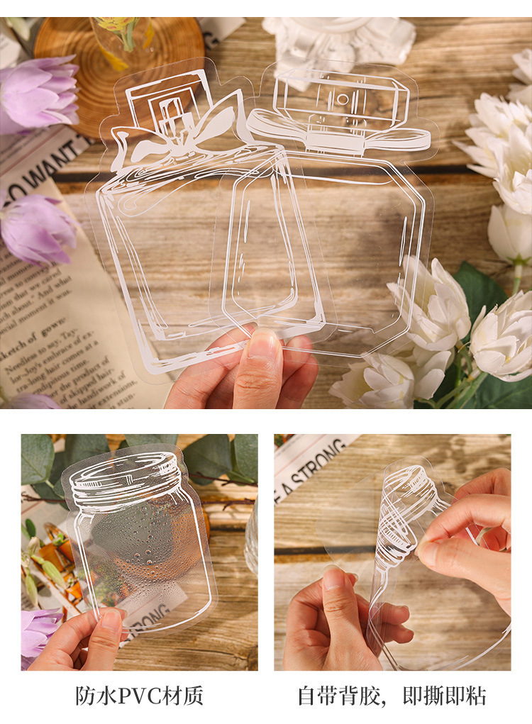 투명 PET 방수 손 계정 스티커 에 꽃 원하는 병 장식 스티커 DIY 소재 손 계정 스티커 도매