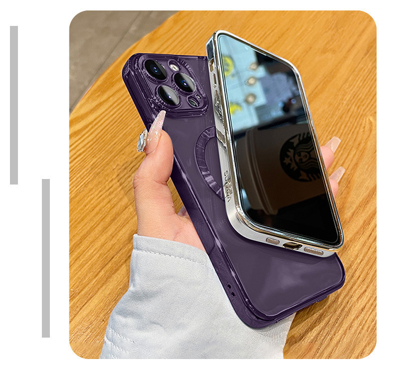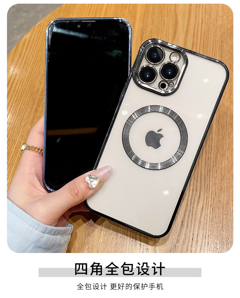 Iphone15 전화 케이스 전기 도금 자기 흡입 13 Apple 14 보호 케이스 새로운 14Promax 실리콘 투명한