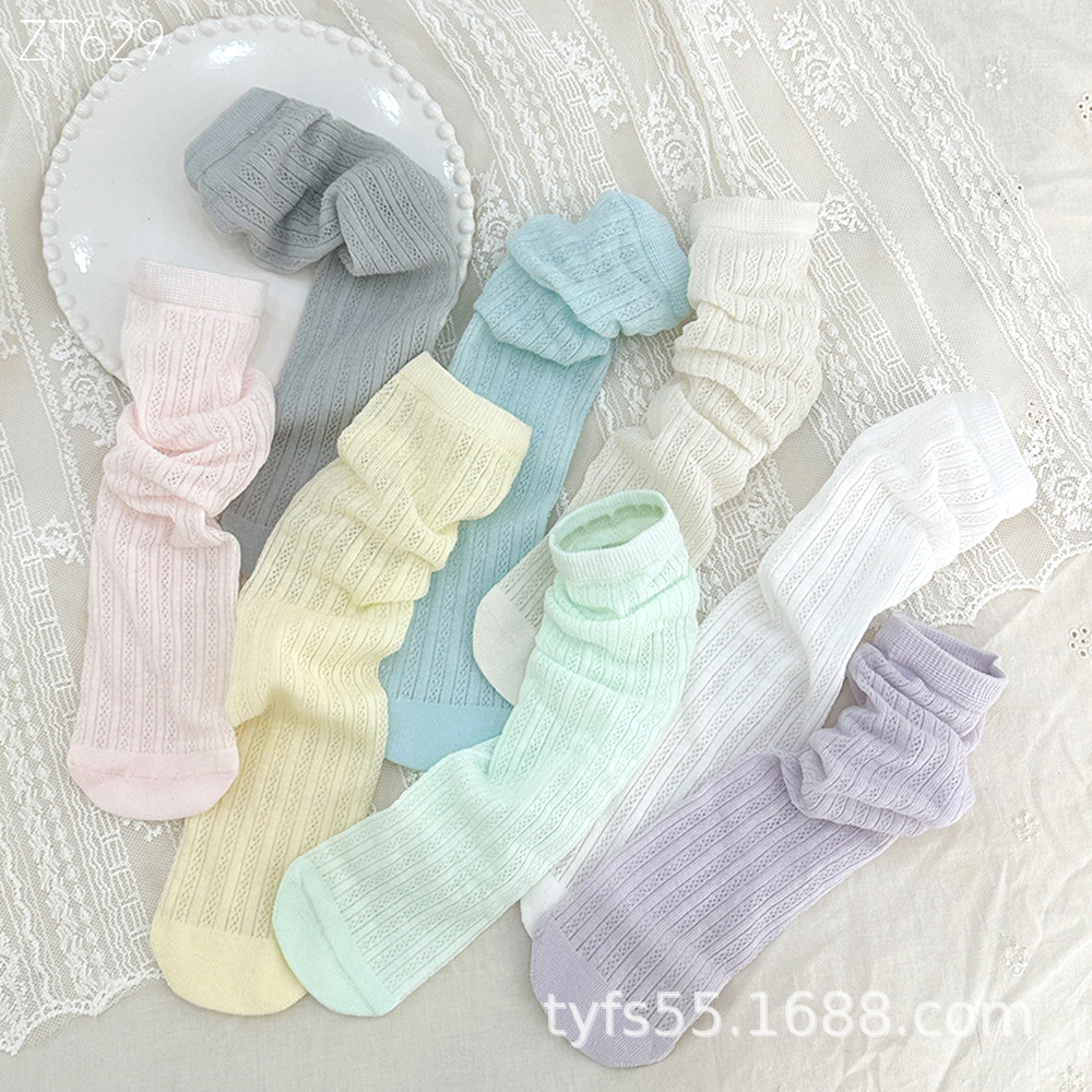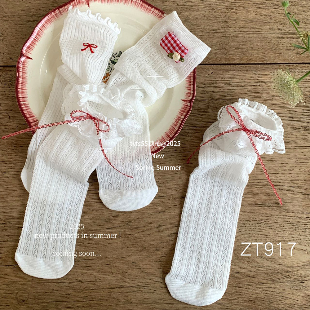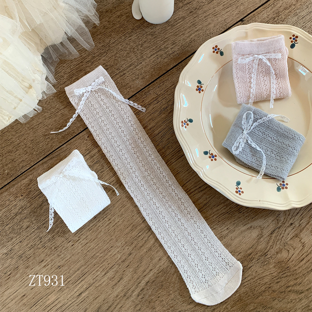 여름 여자 메쉬 중간 길이 양말 한국 스타일 어린이 스태킹 양말 레이스 공주 새끼 양말 아기 모기 방지 양말
