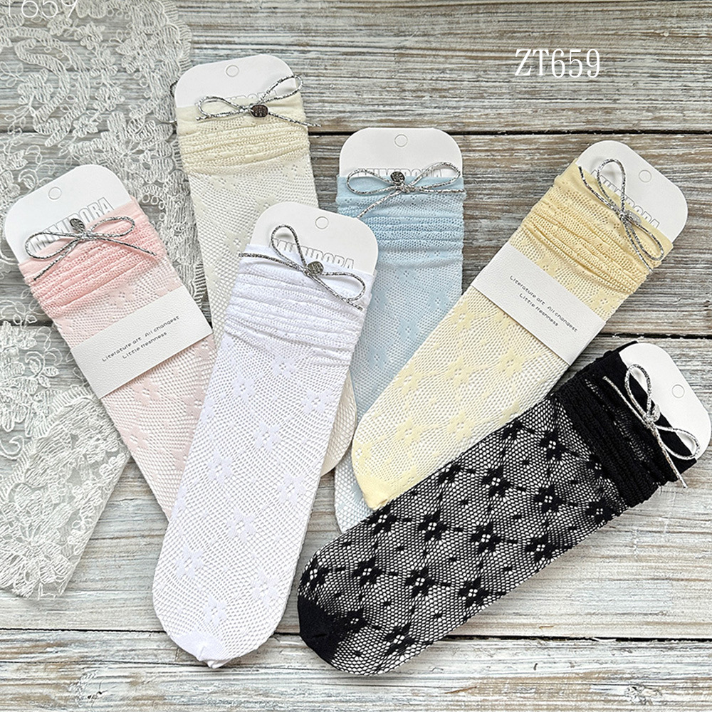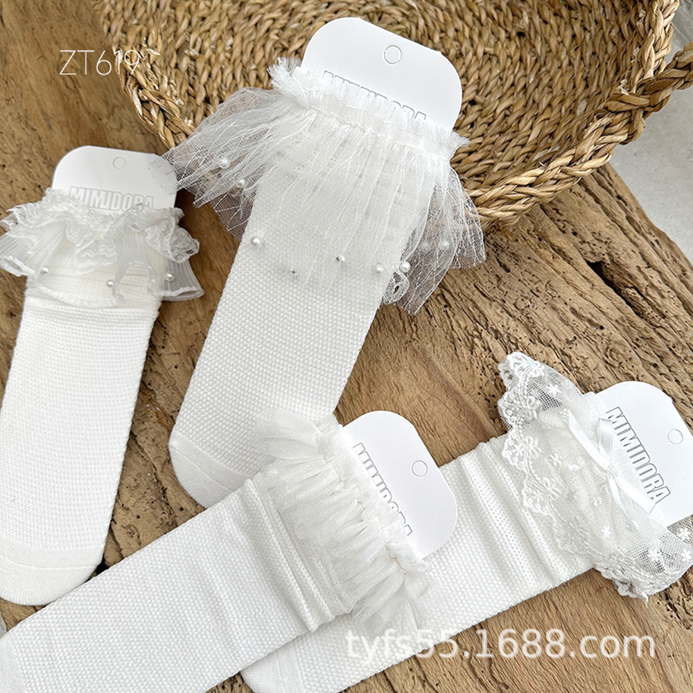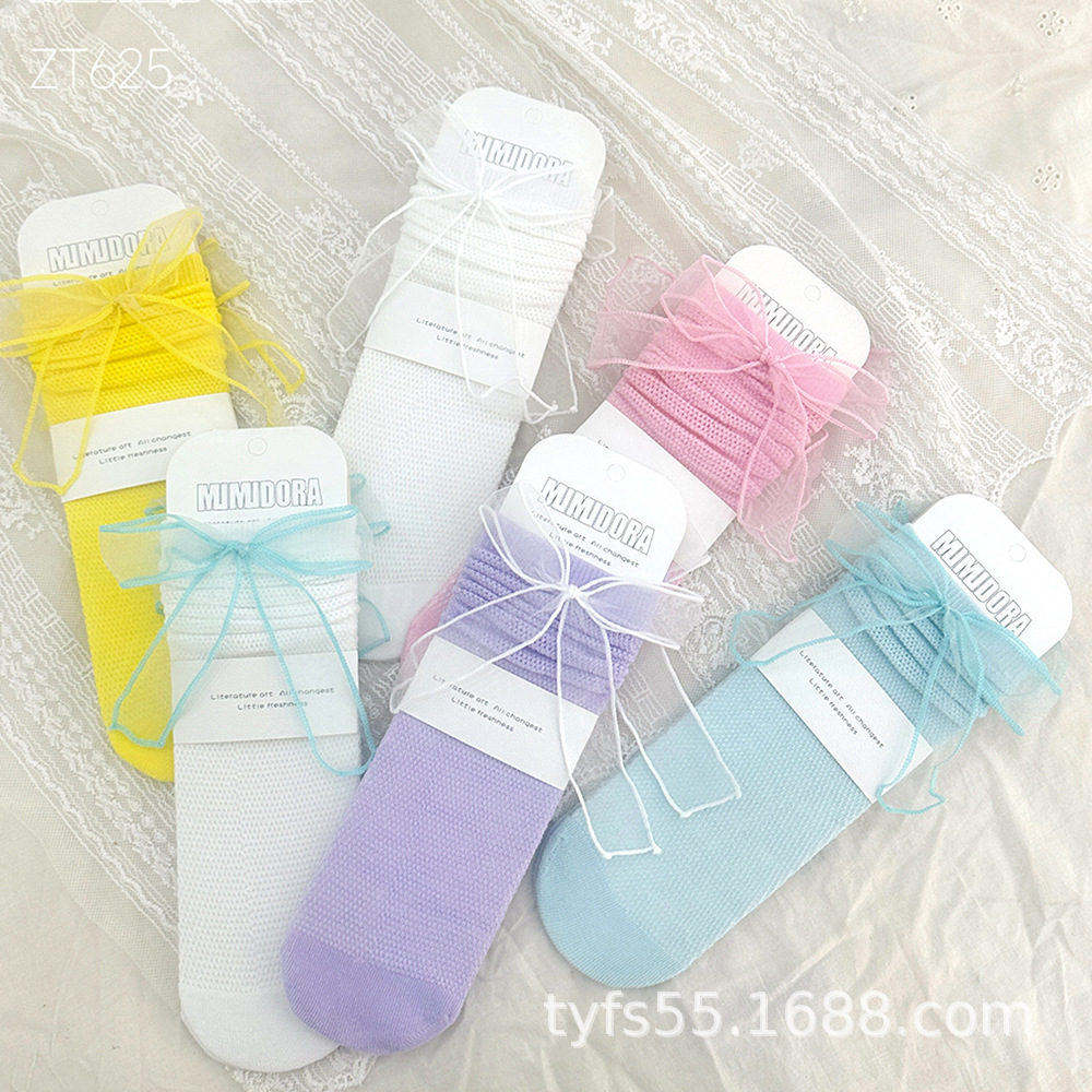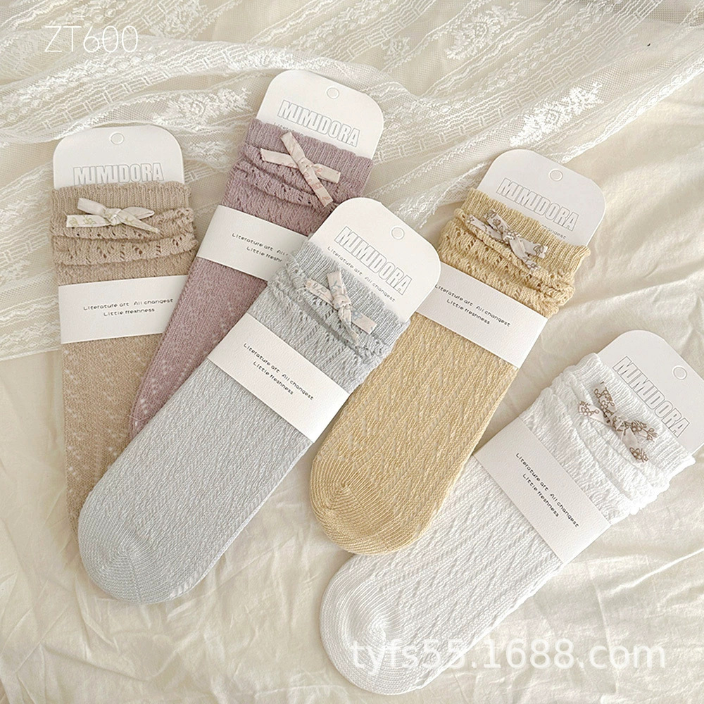 여름 여자 메쉬 중간 길이 양말 한국 스타일 어린이 스태킹 양말 레이스 공주 새끼 양말 아기 모기 방지 양말