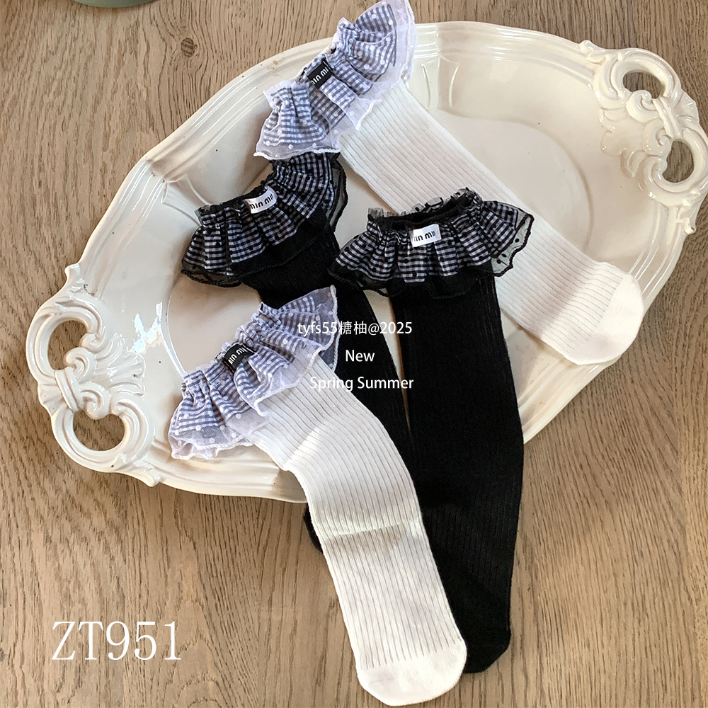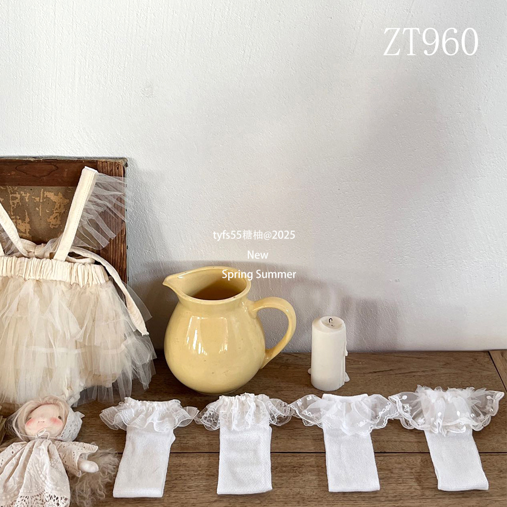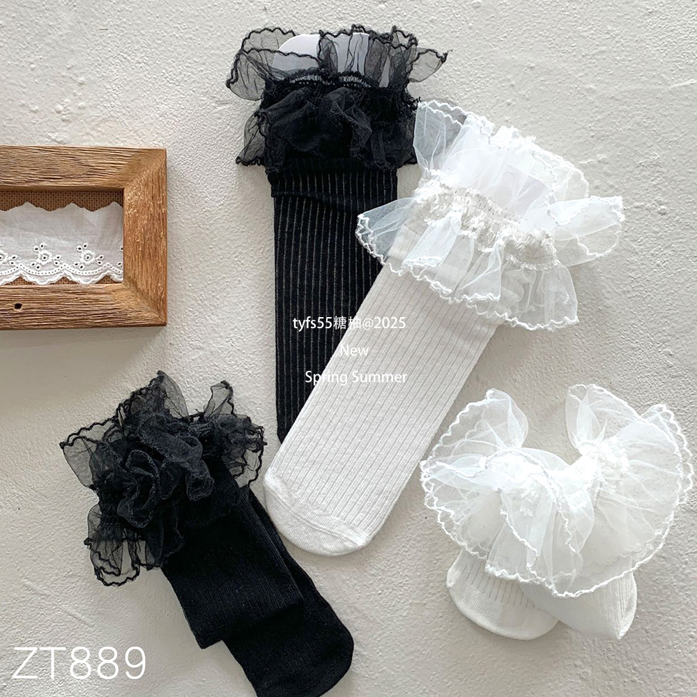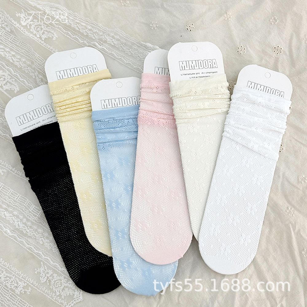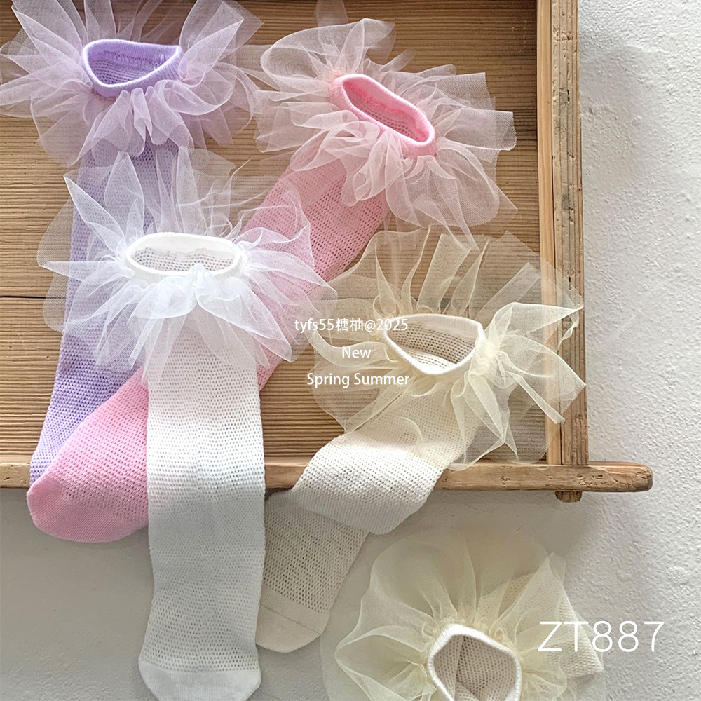 여름 여자 메쉬 중간 길이 양말 한국 스타일 어린이 스태킹 양말 레이스 공주 새끼 양말 아기 모기 방지 양말스토어 가기
