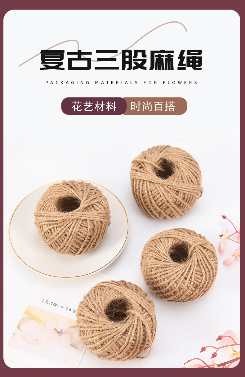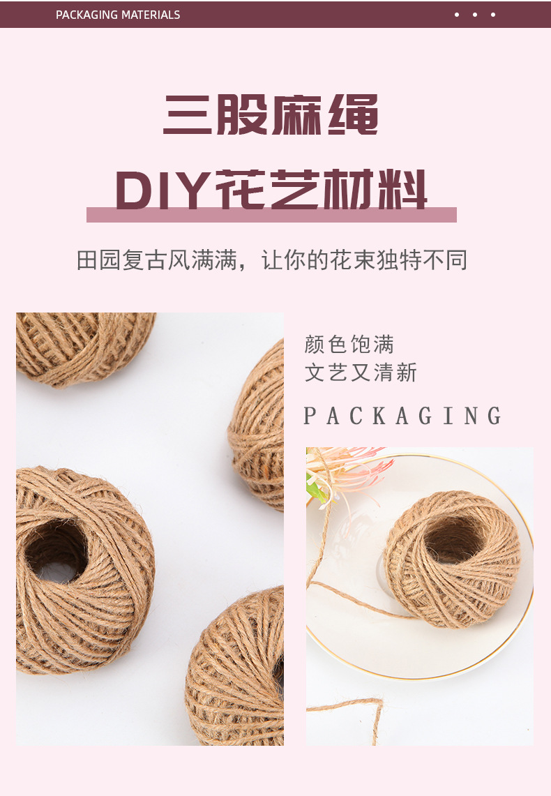 풀 엣지 도매 꽃 포장 재료 대마 로프 꽃다발 선물 포장 케이블 넥타이 길이 40 미터, 폭 2mm 3 가닥 대마 로프