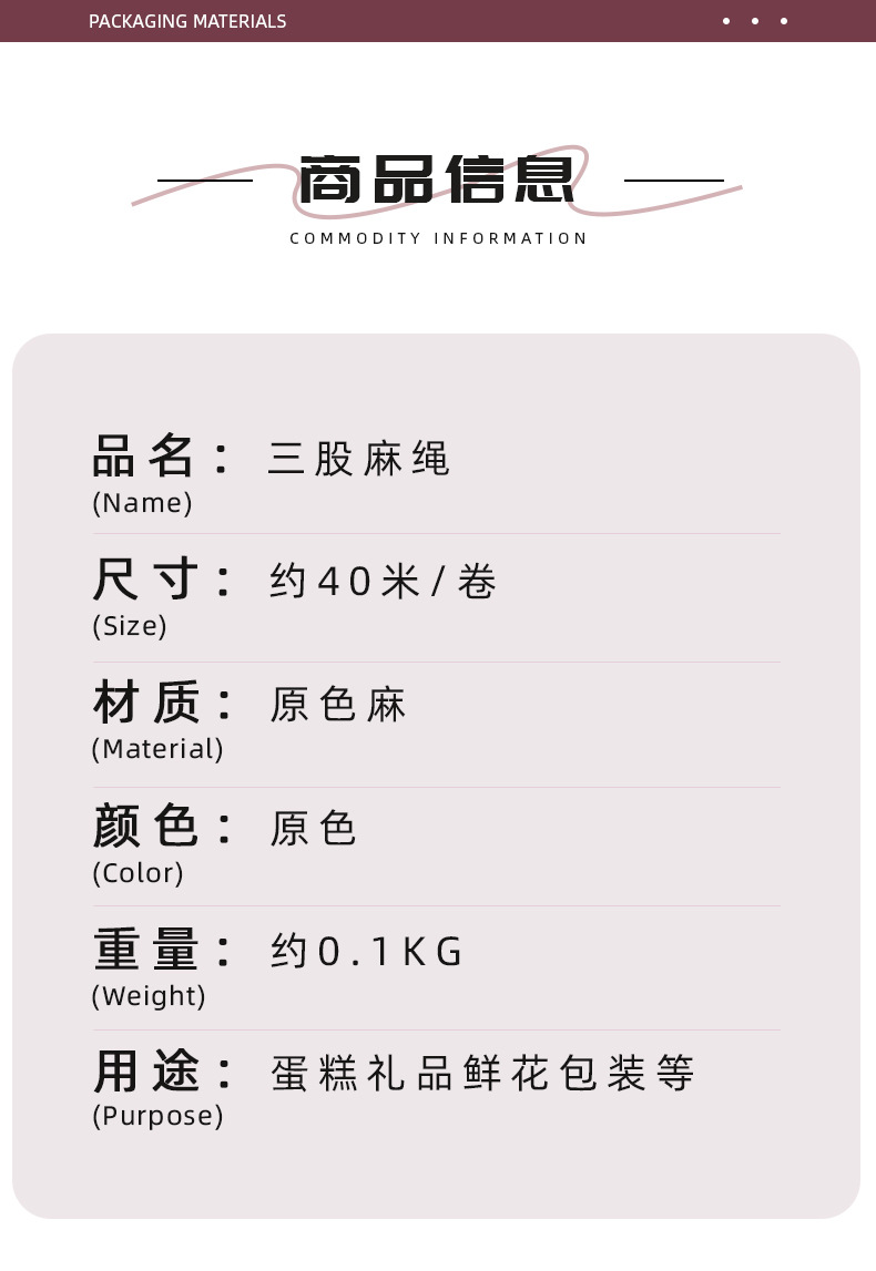 풀 엣지 도매 꽃 포장 재료 대마 로프 꽃다발 선물 포장 케이블 넥타이 길이 40 미터, 폭 2mm 3 가닥 대마 로프스토어 가기