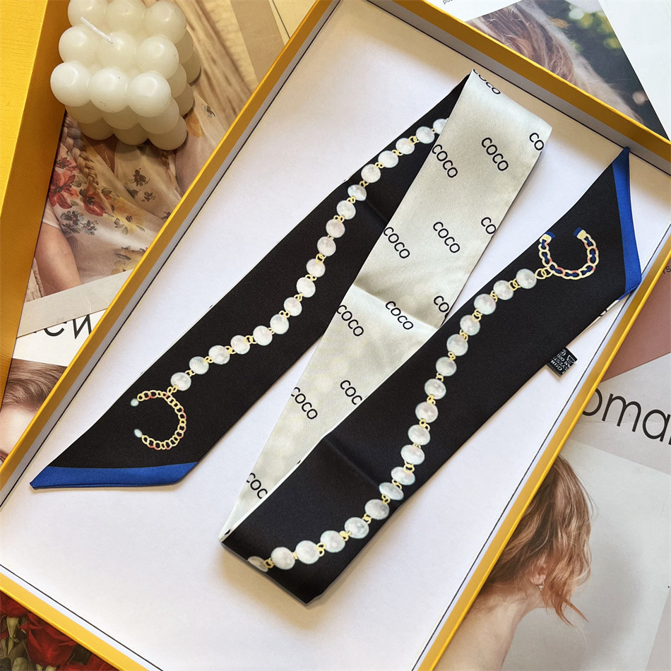 프랑스 스타일의 향기로운 스타일 흑백 실크 스카프 여성의 봄과 여름 헤어 밴드 넥타이 포장 가방 핸들 리본 스카프 동반 선물 리본