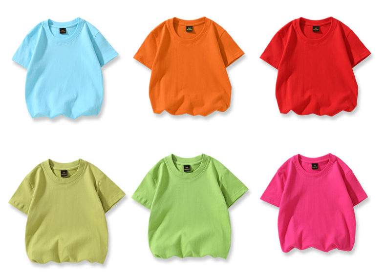 여름 어린이 티셔츠 반팔 순수 코튼 라운드 넥 느슨한 스포츠 유치원 세 가족 교복 맞춤형 흰색 티셔츠스토어 가기