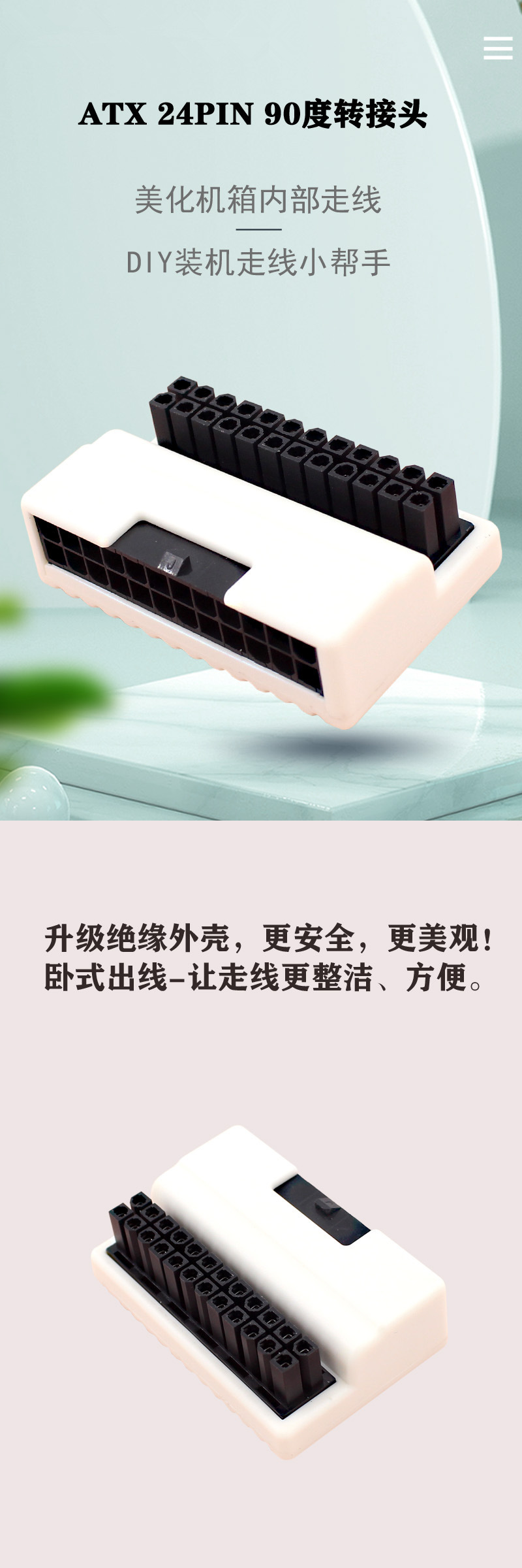 ATX 마더 보드 24P 전원 공급 장치 90 도 스티어링 터닝 조인트 DIY 설치 액세서리 호스트 라인 미화 마무리 흰색스토어 가기