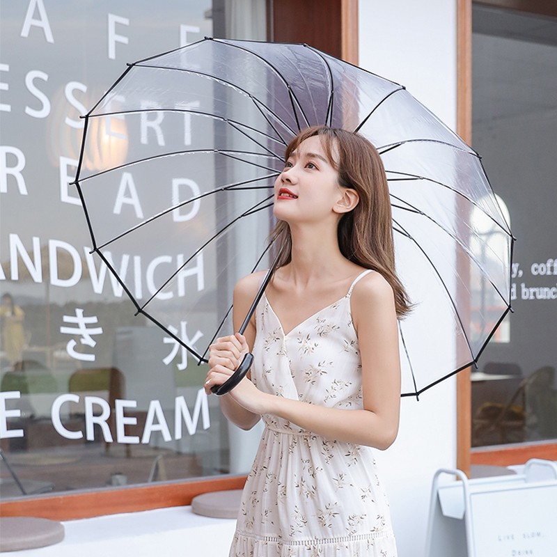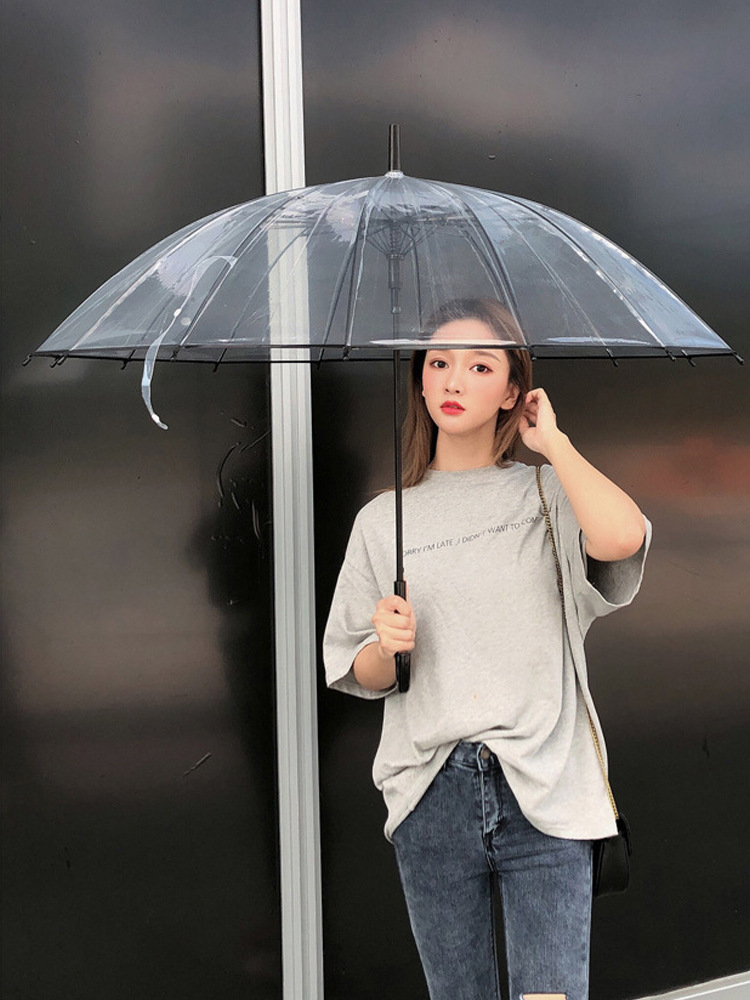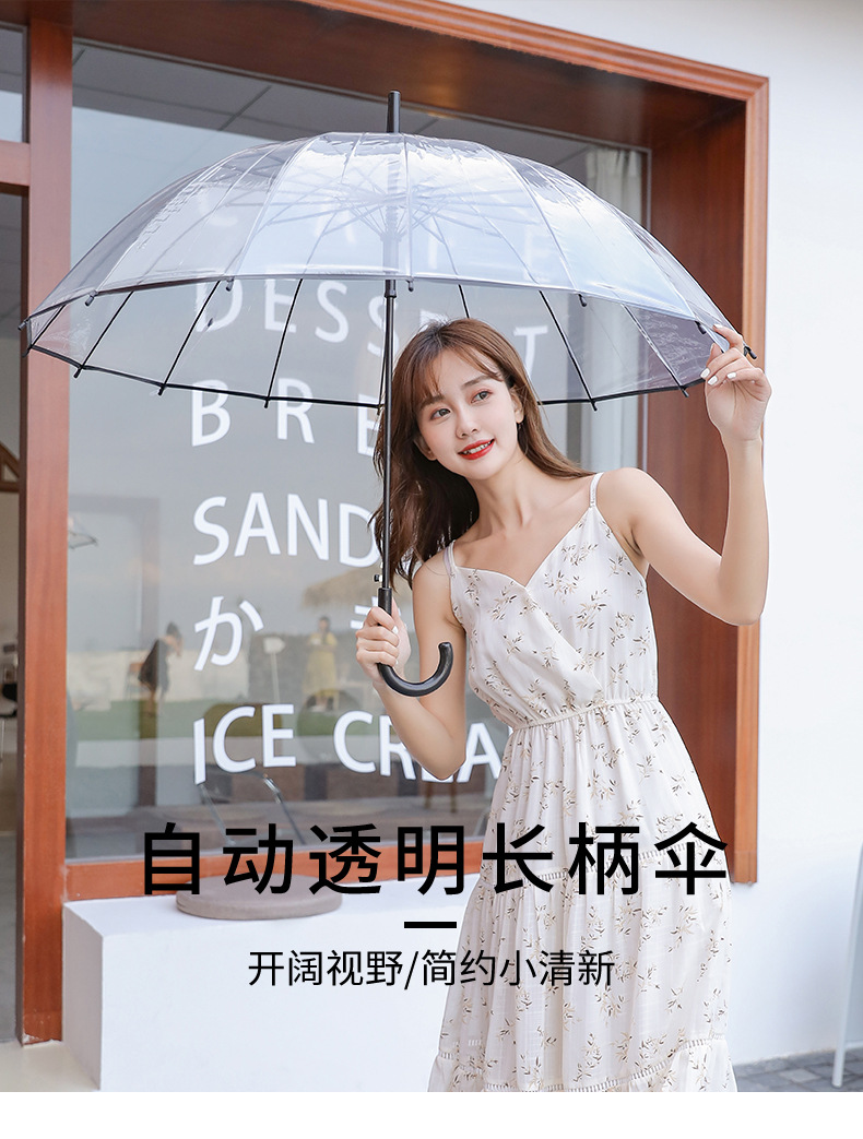투명한 우산 긴 손잡이 여성 흰색 사이버 축하 사진 두꺼운 맞춤형 작은 신선한 우산 남녀 학생 커플 우산스토어 가기