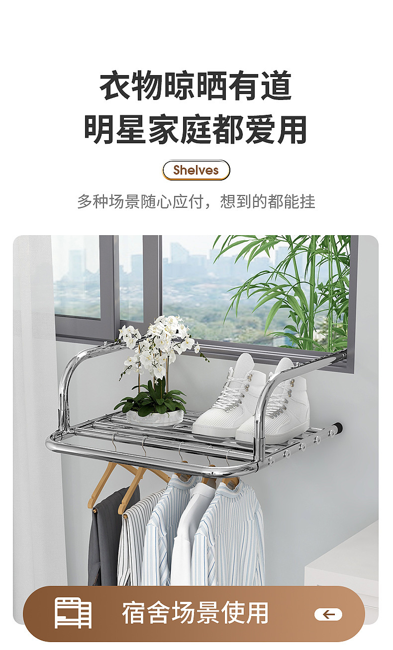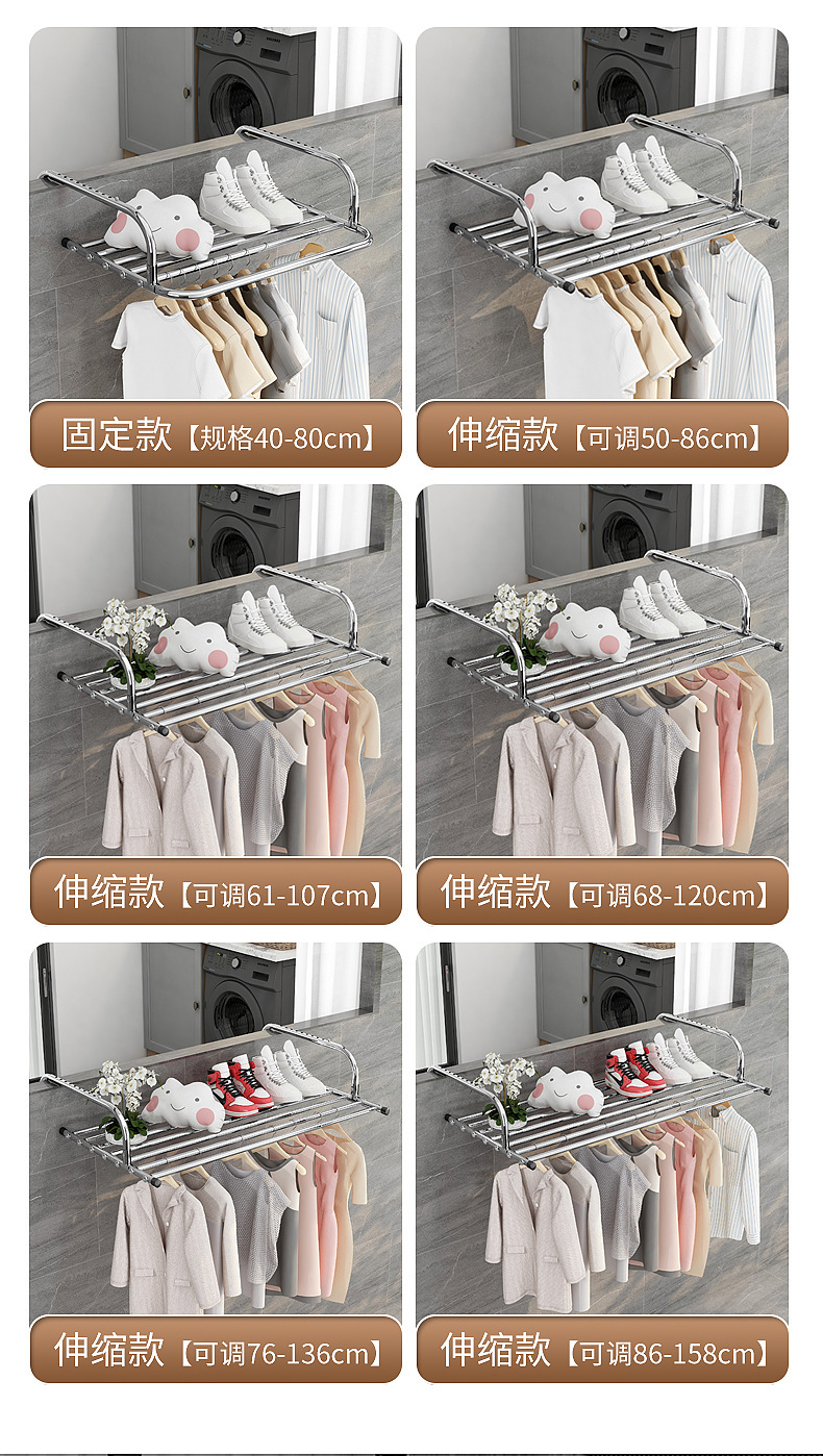 접이식 옷 랙 벽 매달려 실내 옷 건조 막대 가정용 발코니 야외 스테인리스 추출 가능한 막대 건조 퀼트 유물스토어 가기