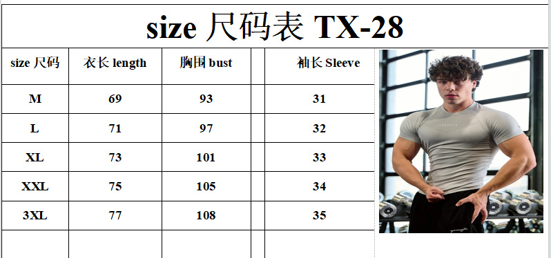 젊은 새 스타일 피트니스 옷 스포츠 티셔츠 근육 꽉 옷 남성용 높은 탄성 훈련 옷 짧은 소매 피트니스 옷스토어 가기