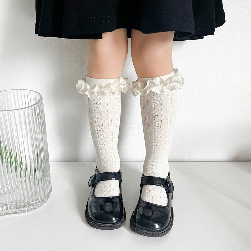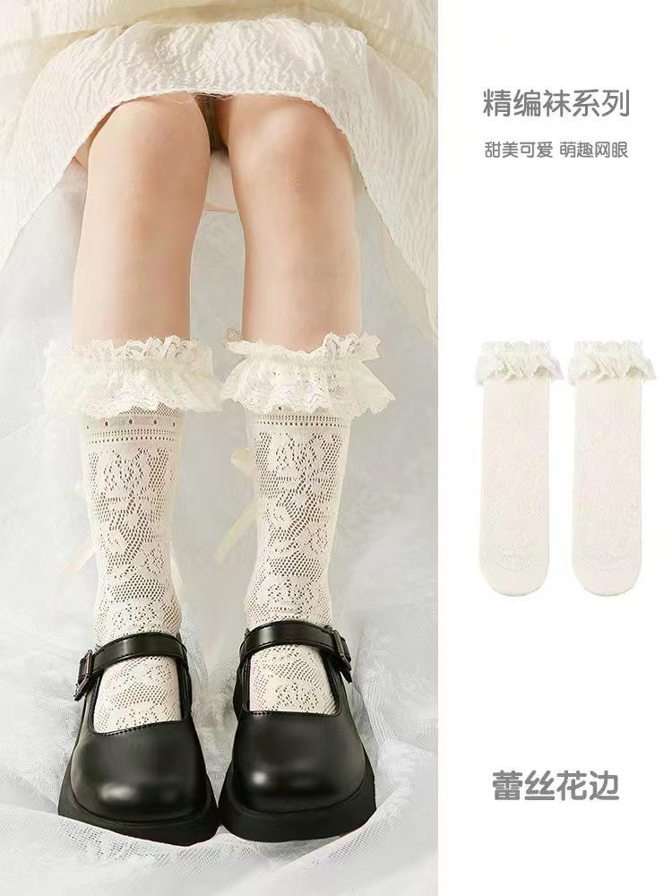 새로운 어린이 레이스 양말 활 아기 소녀 종아리 양말 여름 얇은 통기성 흰색 어린이 양말 도매