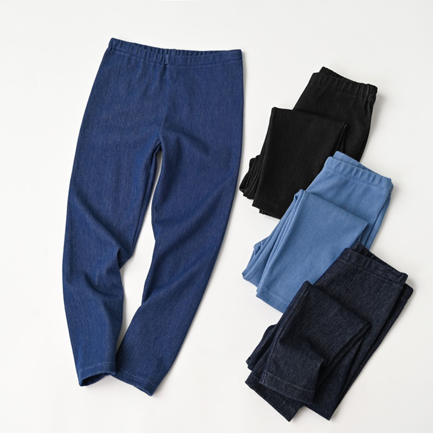 니트 모조 데님 레깅스 4 면 탄성 어린이 스트레치 긴 바지 소년 소녀 슬림 핏 겉옷 cuhk 어린이스토어 가기